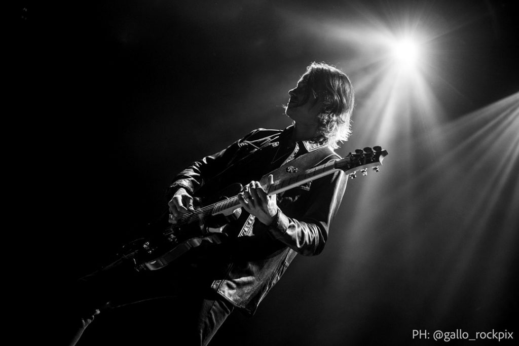 Entonces, ver a la banda en vivo fue encontrarse con un conjunto de virtudes que se potenciaron en el despliegue que lograron en el escenario, algo que se pudo percibir desde el inicio con “Silver Tongue”, “Addicted to Pain” y “Ghost of Days Gone By” tres canciones que sirvieron para definir desde un principio la variedad de sonoridades que muestra la banda. La primera con un sonido moderno y pesado, la segunda con una atmósfera más heavy y oscura sumada a la tercera con una impronta más pesada y melancólica; podrían ser tres momentos (adicionando a la canción elegida para continuar el show “Sin After Sin” que fue una especie de balada densa y pesada) que alguien podría elegir en una playlist del grupo para saber de qué se trata la música de AB. Sería exagerado decir que la banda da cuenta de una propuesta novedosa o revolucionaria con su música. Por el contrario, es claro que el grupo busca dar cuenta de su indudable gusto por el hard rock clásico norteamericano y a eso sumarle algunos ingredientes más modernos y oscuros (es bueno aclarar que bajo, guitarra y batería fueron parte de CREED una banda que retomó el grunge a finales de los noventa y lo hizo más radial, por así decirlo).