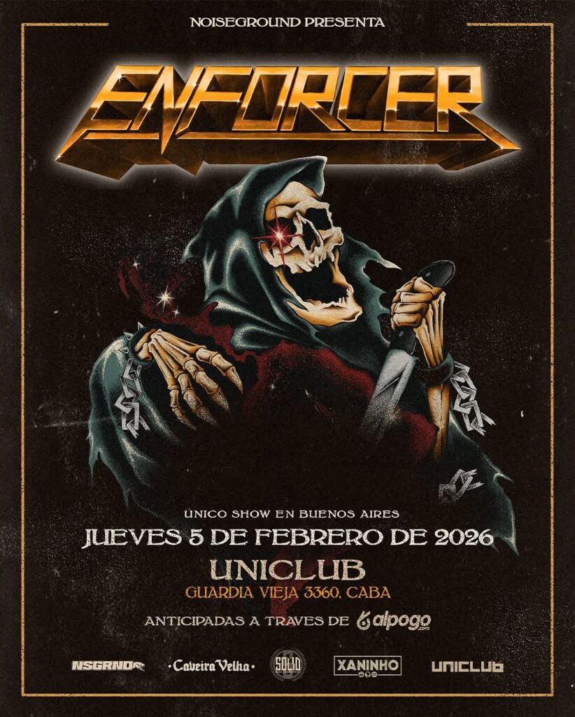 ENFORCER visitó Buenos Aires en 3 oportunidades: 2013 (Asbury), 2016 (Uniclub, ver crónica acá) y 2019 (El Teatrito, ver crónica acá), siempre ante un público fiel y entusiasta. Sus shows en el país se caracterizaron por una fuerte conexión con la audiencia metalera, especialmente con aquellos seguidores del heavy metal clásico que encontraron en Enforcer una banda contemporánea alineada con sus gustos y valores.
