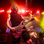 La segunda canción de la noche “Caught in a Mosh”, presentada por Scott Ian, fue literal, principalmente porque empezó un pogo y un mosh furioso de un público con ganas de saltar y arrojarse por los aires. “Madhouse” presentada por Joey Belladona con el saludo protocolar “¿Cómo están Buenos Aires?”, fue otra verdadera fiesta de salto y pogo con un especial lucimiento de Belladona animándose a meter un partecita de “The Ripper” de JUDAS PRIEST al principio de la canción y luego alcanzando los agudos en una canción por demás exigente. En este sentido, la presencia de “Metal Thrashing Mad” lo mostró en un gran nivel vocal, algo no menor en canciones que tienen un alto grado de agresividad y violencia. La canción presentada por Ian como “una canción dedicada aquellos que son vieja escuela” tuvo aún más sentido con la presencia de Dan Lilker en reemplazo de Frank Bello quien no pudo encargarse del bajo durante la gira latinoamericana por problemas de salud. El actual líder de NUCLEAR ASSAULT fue parte de la banda del primer disco de la banda “Fistful of Metal” que este año cumple cuarenta años, por lo que elegirlo como reemplazante tuvo mucho sentido. En este punto, más allá de que su estancia en la banda sea ocasional, demostró todo su oficio y su presencia en el escenario al punto que no hubo demasiados argumentos para extrañar a Bello. Si bien su estilo es mucho más agresivo, el protagonismo que tuvo en escena sumó a la energía de la banda logrando, incluso, versiones más rápidas y violentas de las canciones originales, algo que justifica su aporte al cien por ciento.