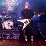 La reproducción de “The Number Of The Beast” de IRON MAIDEN con el telón cerrado (una especie de homenaje/cábala que la banda suele utilizar para comenzar los shows) dio inicio a una serie de intros (entre las que se incluyó “I Can’t Turn You Loose” de OTTIS REDDING en la versión de los BLUES BROTHERS) hasta que “Among the Living” inició el show con la banda a pleno, descargando toda su energía, mostrando como primera sensación una gran labor de Jonathan Donais a la hora de los solos. El guitarrista, último ingreso oficial al grupo, no se caracteriza por su simpatía y buena onda, por el contrario, su actitud estática y poco expresiva en el escenario da entender que lo suyo tiene que ver con lograr que la banda suene prolija desde las guitarras. En ese sentido, a lo largo de la noche su actitud estuvo a la altura; ejecutando cada solo y cada riff de manera efectiva sin ningún tipo de parafernalia.