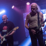 En este contexto, frente a un público hiper enganchado con casi todas las canciones del set, el grupo supo aprovechar la situación para mostrar una de las grandes fortalezas: el nivel ejecución instrumental. Más allá de que como dijimos BARÓN ROJO sigue los preceptos del heavy metal de los ochentas (que ayudó a inventar); hoy por hoy el cuarteto tiene una sólida base constituida por Rafa Díaz, en batería y José Luis Morán en bajo quienes aportaron la solidez necesaria para que los hermanos De Castro pudieran desempeñarse con soltura. En especial el primero (el baterista que más tiempo ha estado en la banda) le dio a las canciones una pesadez y contundencia mucho más cercana al metal y no tan hard rockeras como era esperable, lo que a juzgar por la reacción de los presentes fue una buena noticia y permitió que los hermanos De Castro pudieran incluso sumar al set tres instrumentales (la ya mencionada “El barón vuela…”, “Buenos Aires” para lo cual recordaron la primera visita y “Al pie del cañón”). En cada una de ellas al igual que en los segmentos instrumentales de cada canción se notó la felicidad de los hermanos al ejecutar cada nota incluso ensayando algunas coreografías que acompañaron las melodías casi siempre coreadas por los presentes.