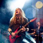 En este punto, a lo largo del show la figura de Hansi Kürsch pareció recibir con los brazos abiertos esa energía y utilizarla para que sus interpretaciones tuvieran un nivel sublime. No descubrimos nada si decimos que el alemán tiene una de las voces más particulares del género, con un nivel de agresividad y melodía poco frecuentes. Interpretaciones magistrales en canciones como “The Script for My Requiem”, “Time Stands Still (At the Iron Hill)” o “Traveler in Time”, solo por citar algunas, lo mostraron como una especie de trovador épico, metalero y alegre de las historias fantásticas que propone la banda. Si a eso le sumamos que, a lo largo de varias canciones, se tomó el tiempo de explicar el contenido de las mismas e incluso, hacer mención al paralelo entre la ciudad de origen de la banda (Krefeld) y el tango argentino en cuanto a la “melancolía y sufrimiento”; el resultado fue que sus intervenciones generaron un interesante dinamismo para un show que no tuvo ningún punto flojo en cuanto a interpretación, interacción y respuesta del público.