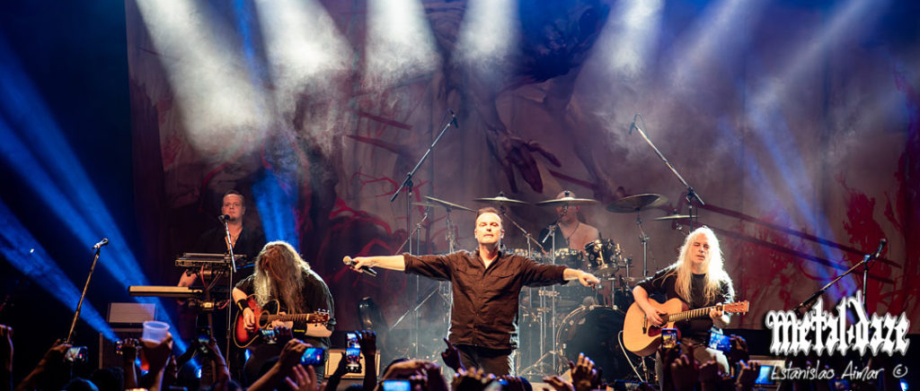 En este contexto, y entendiendo que por las cuestiones que hablamos cada visita de la banda es especial, claramente los alemanes eligieron un set que tuvo como objetivo principal mostrar todas las caras musicales que propone el grupo. Entonces el inicio con “Imaginations From the Other Side” continuada por “Blood of the Elves” y “Nightfall” crearon rápidamente el ambiente propicio para que comenzara una especie de fiesta pagana que armó el público. La primera mostrando una faceta pesada y melódica; la segunda un clima casi thrasher y la tercera desnudando la faceta épica del grupo, esa que invita a que la gente participe casi obligatoriamente; algo que sucedió en varios momentos del show generando un hermoso clima en canciones como “Skalds and Shadows” o la icónica “The Bard’s Song – In the Forest”, donde la mayor parte de las canciones fueron cantadas por el público; fueron algunos de los momentos en donde la gente y la banda se contagiaron mutuamente la energía, dejando de lado las cuestiones protocolares y permitiendo que el show fuera creciendo en función del clima generado en el lleno total del Teatro Flores.