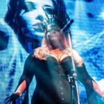 Sverd explotaba las texturas de sus teclados, agregando capas atmosféricas que reforzaban la impresión de estar frente a una batalla cósmica musicalizada. Visualmente, Sarah Jezebel Deva, en su papel de reina oscura, acaparaba todas las miradas, moviéndose con gestos amplios y dominantes, mientras la iluminación cambiaba de tonos rojizos a dorados, simulando un apocalipsis de fuego y energía que parecía extenderse desde el escenario hacia la audiencia. Los músicos vestidos de blanco contrastaban con ella, reforzando la narrativa de luz contra oscuridad, pureza contra caos. El público respondió con entrega total: algunos coreaban los riffs, otros se sumergían en los coros sinfónicos, imaginando los “carros de trueno” avanzando a toda velocidad, mientras la batería y el bajo mantenían a todos sincronizados con la intensidad de la música. De este modo, Chariots of Thunder funcionó como un clímax perfecto del primer bloque, cerrando con fuerza la fase más épica y sinfónica de la noche antes del intermedio.