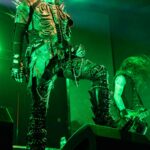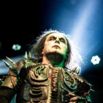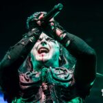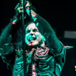 Dani Filth es mucho más que un vocalista: es el alma oscura que define la experiencia de CRADLE OF FILTH. En el escenario, se transforma en un maestro de ceremonias macabro, un ghoul del submundo capaz de controlar la intensidad de cada canción con un dominio absoluto de su instrumento más poderoso: su voz. Su famoso chillido agudo corta el aire y atraviesa la multitud, alternando registros con precisión quirúrgica, desde gruñidos guturales hasta aullidos etéreos que parecen emerger de las sombras más profundas.