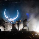 Cuando UADA subió al escenario, la atmósfera cambió de inmediato. Durante todo el show, una luna oscura e hipnótica permaneció proyectada sobre el fondo, acompañada de sonidos de la naturaleza salvaje, como viento, hojas y ramas crujientes, que envolvían al público en un bosque remoto y ancestral. La banda apareció vestida completamente de negro y con capuchas, proyectando una presencia ritual y misteriosa. Desde el primer acorde quedó claro que su música espectral hablaba por sí sola, guiando a la audiencia a través de paisajes sonoros densos y sobrecogedores.
