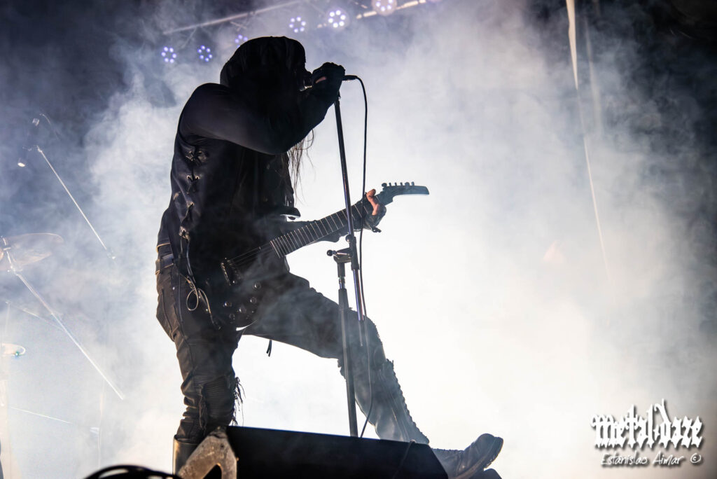 El tramo final del concierto alcanzó un nivel de teatralidad extrema cuando un miembro del staff encapuchado apareció para interpretar la macabra voz del protagonista de Hellraiser presente en el disco, sumando una capa adicional de horror en Death Magick for Adepts y Her Ghost in the Fog. La voz cavernosa del invitado dialogaba con los desgarradores registros de Dani, mientras los riffs marcaban la tensión y el logo de la banda omnipresente iluminaba la escena como un oscuro conjuro. La sensación era la de presenciar un aquelarre que unía cine, literatura y metal extremo en vivo, donde cada espectador se convirtió en parte de la narración.