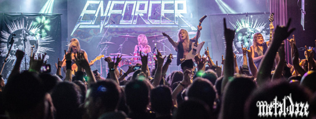 Un par de minutos antes de las 22 hs hicieron su aparición los ENFORCER. Las palpitaciones siguieron en aumento porque aquí el heavy metal fue el protagonista absoluto. De hecho, los suecos bautizaron a este tour Metal Supremacía 2023 que recorre la producción de la banda con canciones de los álbumes “Into the night”, “Diamonds”, “Death by fire”, “From beyond” y “Zenith”. Todos los elementos que se mencionaron hasta aquí en cuanto a estilos y recursos se concentraron y expandieron en composiciones como “One Thousand Years of Darkness”, “Zenith of the black sun” o “From beyond” entre otros muchos durante las casi dos horas de concierto, en las que la voz de registro alto de Olof Wikstrand no decayó en ningún momento en una performance, al igual que el resto de la banda, electrizante, que incluyó alguna canción en castellano, menciones acerca de lo fervoroso del público local y también felicitaciones por la obtención de la tercer copa en el recientemente disputado mundial de futbol en Qatar.