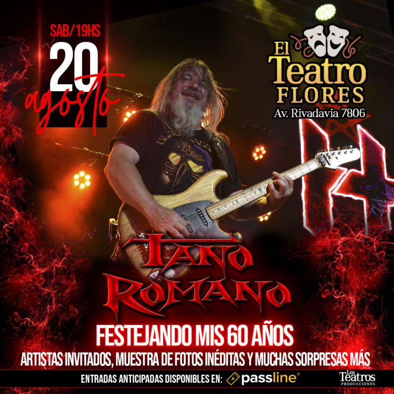 Con una carrera de más de 40 años El TANO ROMANO es uno de los referentes más relevantes del heavy metal argentino y tal vez el creador de las melodías más recordables en el inconsciente colectivo de metaleros y metaleras en nuestro país. Este Sábado 20 de Agosto celebra 60 años en Flores, lo que es una perfecta oportunidad para repasar su vida junto a la música pesada.