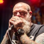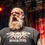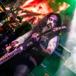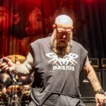 El Teatro Flores, rendido ante el estruendo, se transformó en una cámara de combustión. Lo que en Bonded by Blood nació como furia juvenil, ahora era una máquina calibrada: un choque de precisión sobre la rabia primigenia. Gary Holt, concentrado y meticuloso, dirigió cada riff con autoridad, mientras Tom Hunting mantenía el pulso como un martillo neumático. Y en el centro del escenario, Rob Dukes imponía su figura monumental. Hay algo en su presencia que excede el rol de frontman: es una especie de agitador del mal, un catalizador de energía oscura. Con solo una mirada logra que la gente se prenda fuego. Su gesto, entre el desafío y la sonrisa perversa, enciende a la multitud como si liberara una descarga invisible. Holt lo observa desde su rincón y sonríe: sabe perfectamente de ese poder, lo conoce, lo mide y lo disfruta.
