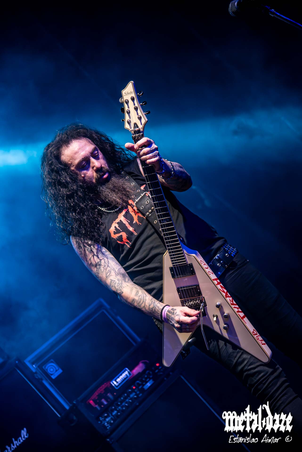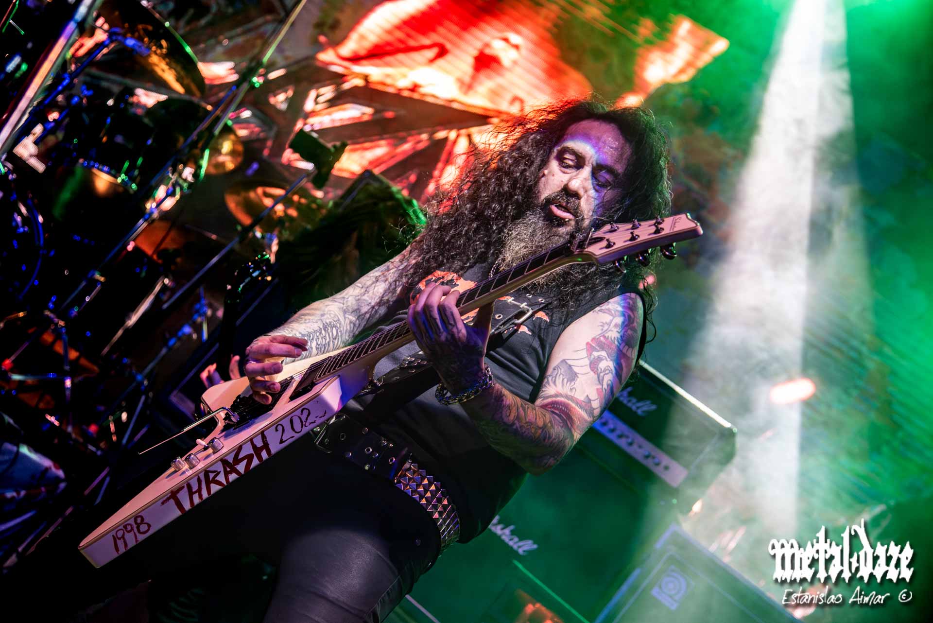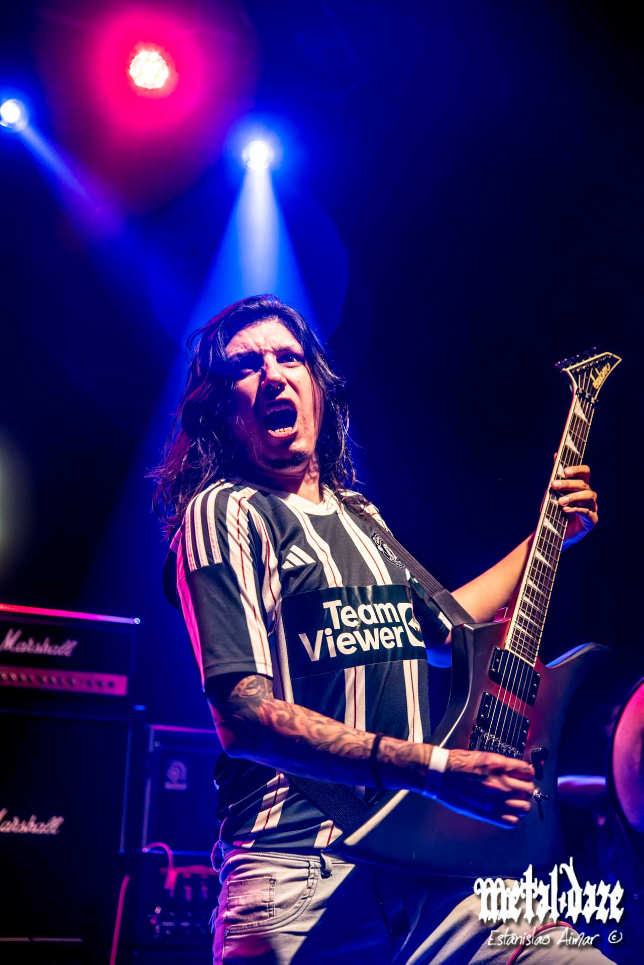 Con Deliver Us to Evil, EXODUS entró en un tramo cargado de emoción. Dukes la presentó como una de sus favoritas y la dedicó a Paul Baloff. La interpretación fue aplastante, una misa metálica dedicada a los caídos. Antes de Piranha, Dukes hizo un breve juego con el público al estilo Freddie Mercury, y cuando el riff irrumpió, la violencia fue total. En medio del caos, Holt realizó su clásico truco: levantó la guitarra con la palanca del trémolo y la hizo vibrar como un animal herido. En esta parte, la banda volvió a tocar canciones de Bonded by Blood, pero en un orden distinto al del comienzo, reescribiendo su propio manifiesto en tiempo real.