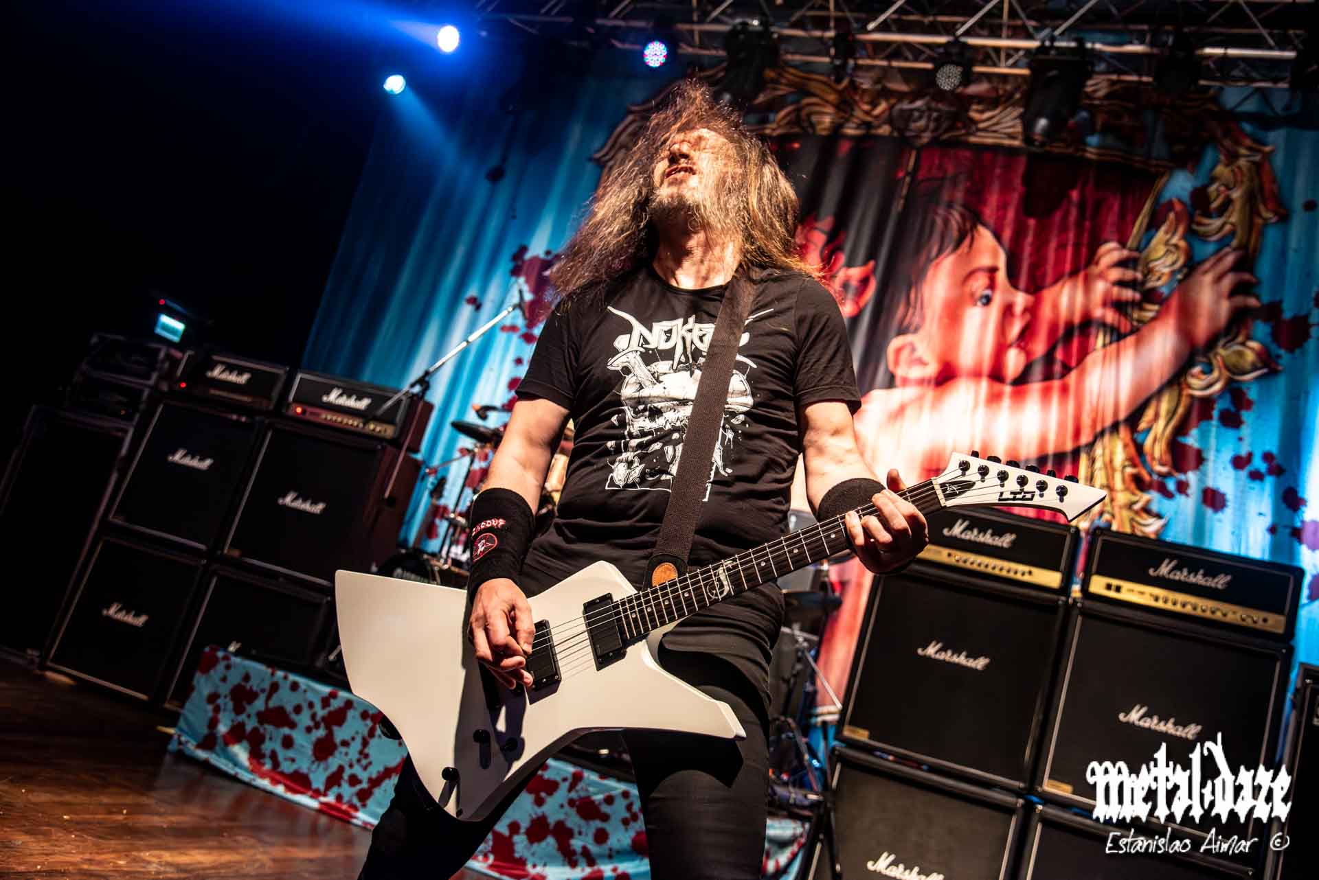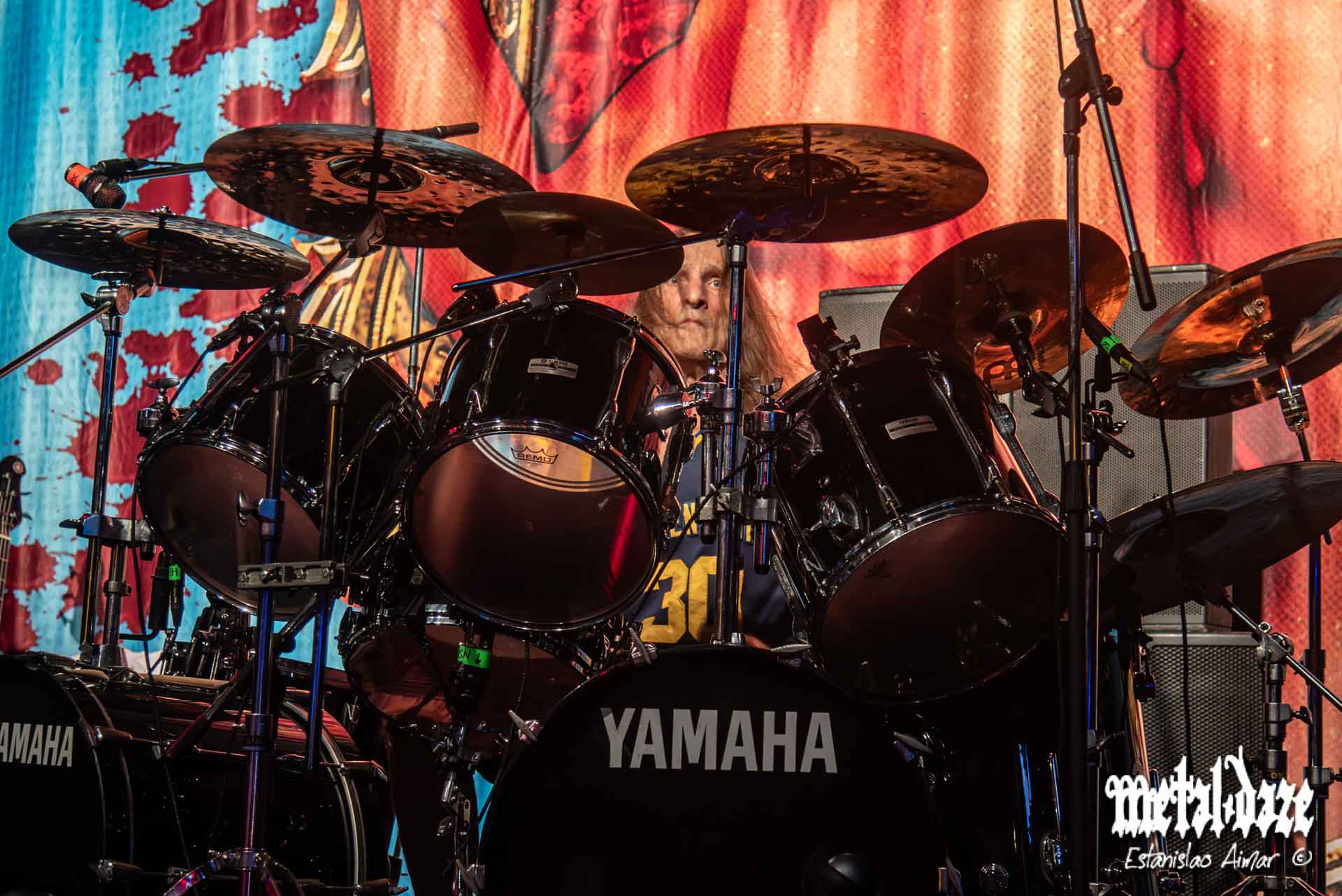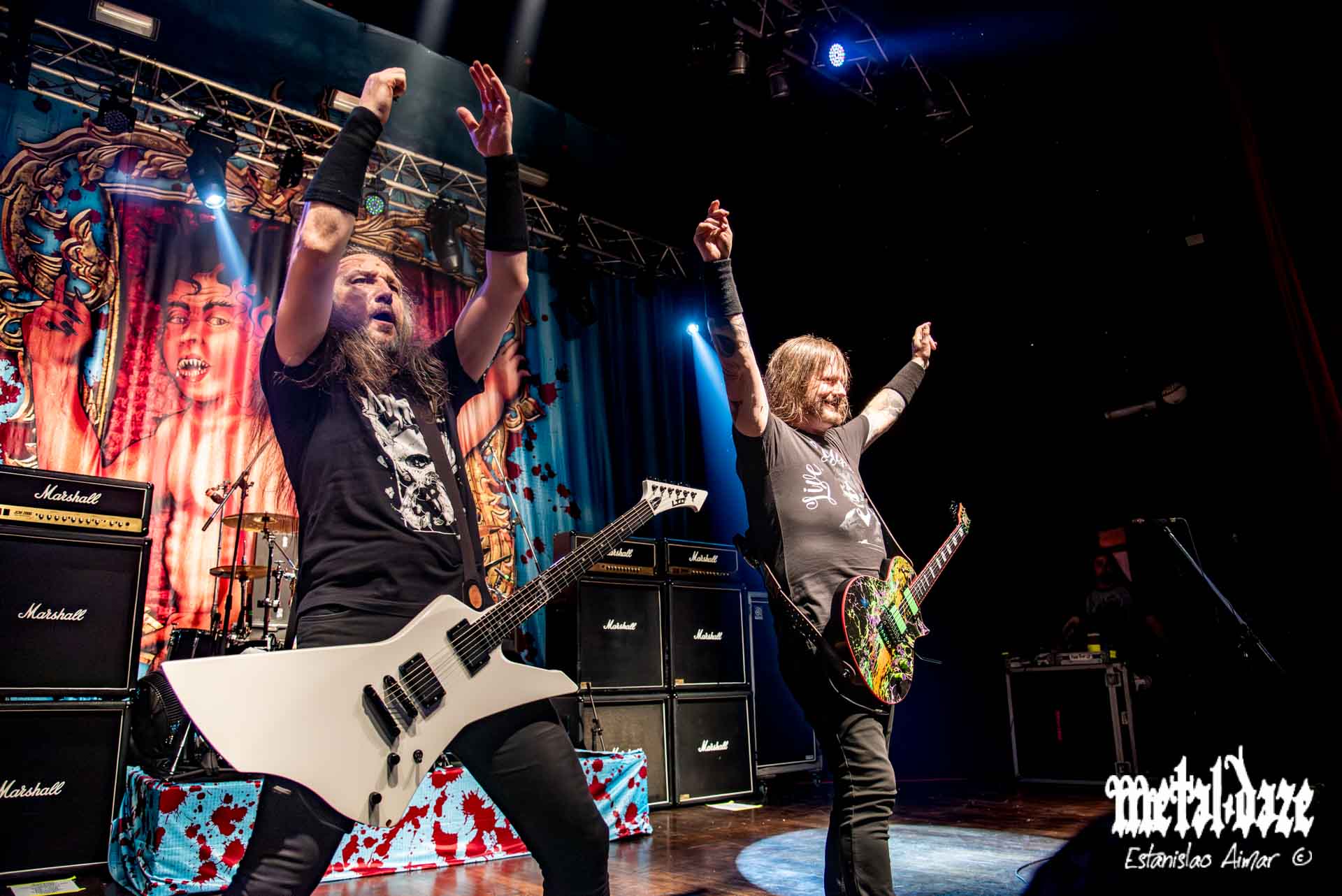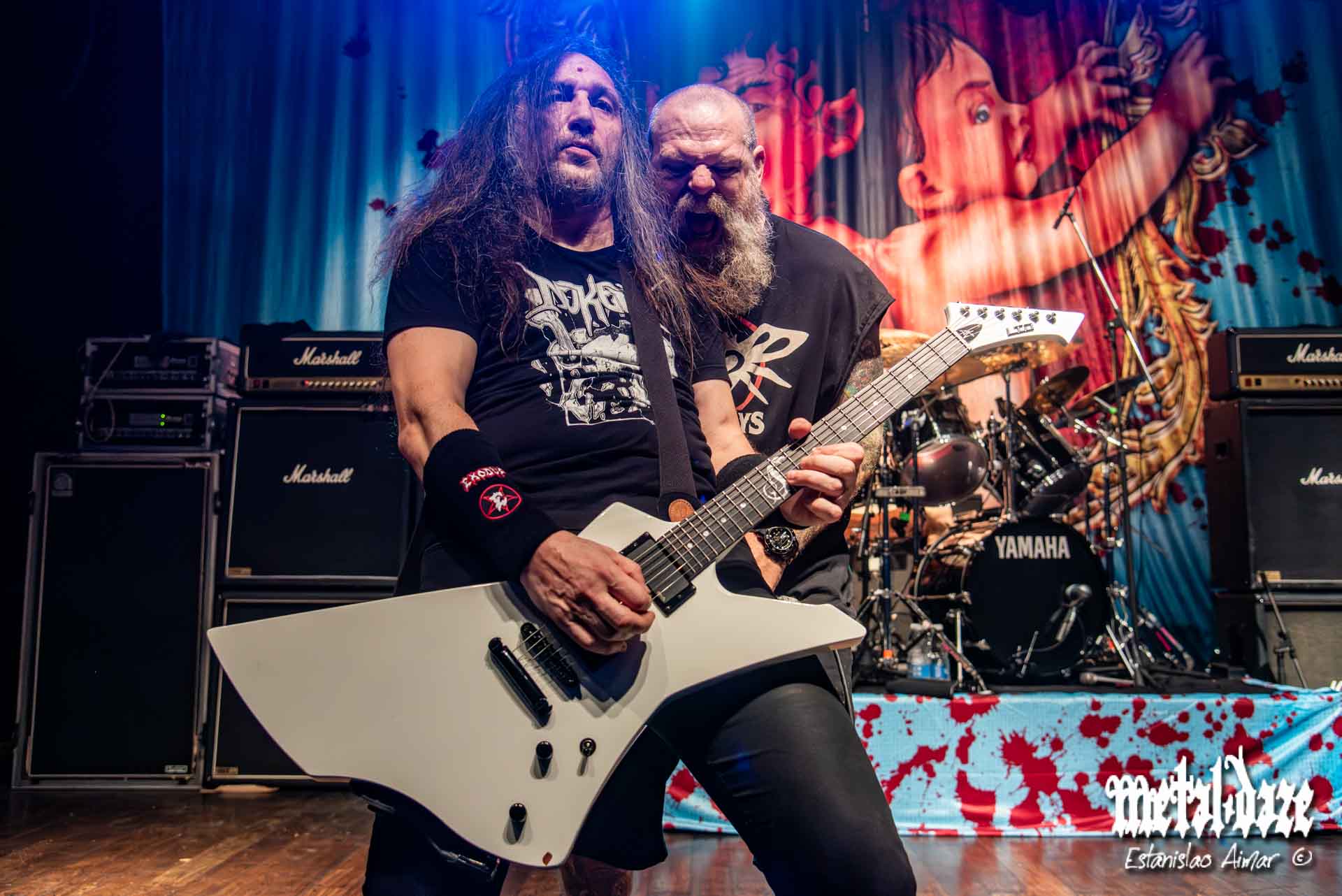 Con Deliver Us to Evil, EXODUS entró en un tramo cargado de emoción. Dukes la presentó como una de sus favoritas y la dedicó a Paul Baloff. La interpretación fue aplastante, una misa metálica dedicada a los caídos. Antes de Piranha, Dukes hizo un breve juego con el público al estilo Freddie Mercury, y cuando el riff irrumpió, la violencia fue total. En medio del caos, Holt realizó su clásico truco: levantó la guitarra con la palanca del trémolo y la hizo vibrar como un animal herido. En esta parte, la banda volvió a tocar canciones de Bonded by Blood, pero en un orden distinto al del comienzo, reescribiendo su propio manifiesto en tiempo real.