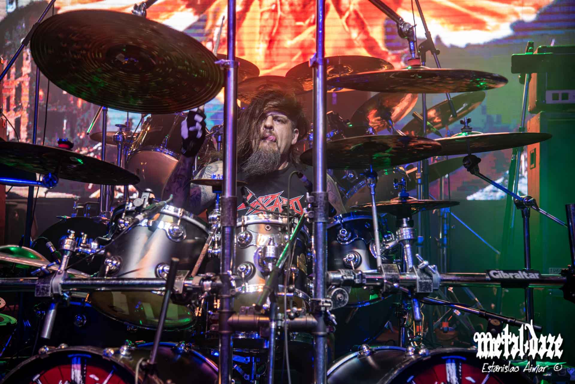 El regreso comenzó con un breve homenaje que, si bien cargado de guiños, resultó algo descontextualizado. Gary Holt lanzó el riff de Raining Blood de SLAYER, seguido por Motorbreath de METALLICA, en una suerte de medley improvisado que no llegó a fundirse del todo con el espíritu de The Toxic Waltz. Sirvió, eso sí, para encender al público antes del clímax final. En el pequeño espacio que quedó tras el cierre de Motorbreath, la banda detuvo el ataque por unos segundos y el público volvió a hacerse oír, coreando otra vez por EXODUS, como si reclamara el último golpe. Solo entonces, entre gritos y ovaciones, comenzó The Toxic Waltz. Lo que siguió fue una erupción colectiva. El riff principal sonó como una descarga de adrenalina pura. El pogo, gigantesco, devoró la pista entera. El tema fue más que un clásico: fue una celebración del caos, una danza violenta en la que nadie se guardó nada.