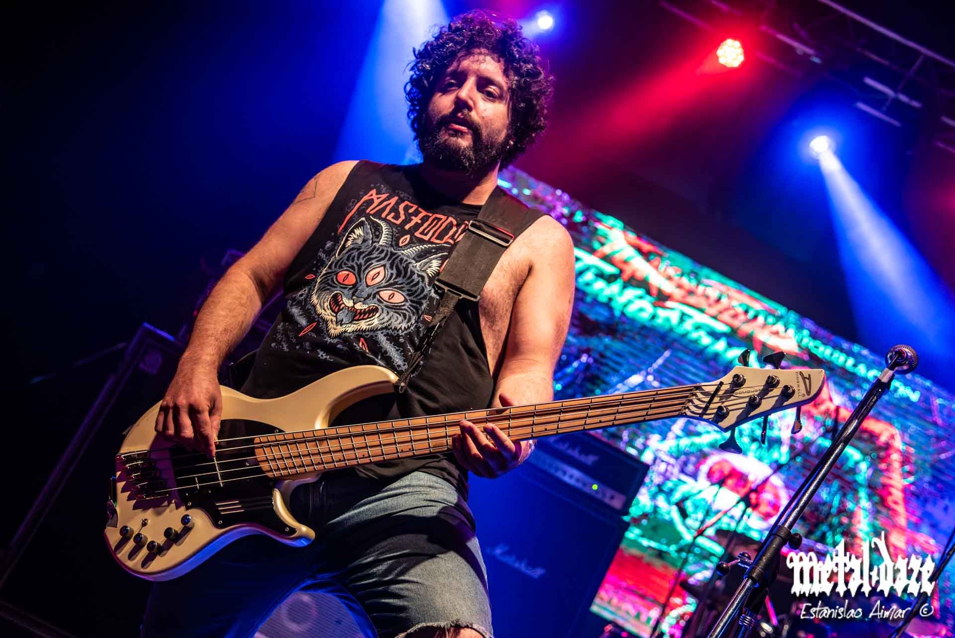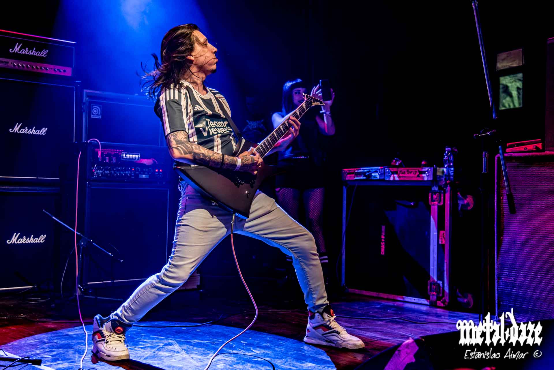 Después fue el turno de TUNGSTENO, que subió la intensidad con un set tan rápido como incendiario. El grupo —cada vez más consolidado como presencia infaltable en los shows internacionales— desató una ráfaga de riffs con Vino y velocidad, Inminente aniquilación, Régimen de violencia, Escuadrón del thrash y Te-Thrash, un combo implacable que puso al público a girar como si el escenario se hubiera desplazado a la Bay Area. En medio de ese caos controlado, hubo un momento tan insólito como glorioso: TUNGSTENO dedicó su show a Ozzy Osbourne y a Miguel Ángel Russo, una mezcla improbable que sólo podría haberse gestado en el subsuelo del metal argentino. Entre risas, puños en alto y mosh desbordado, el gesto terminó por sellar lo que la música ya había dicho: la ironía también puede ser una forma de autenticidad.