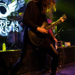 Con la afluencia de espectadores creciendo todavía tímidamente se hicieron del escenario los SIN FUTURO, cuarteto compuesto por Gonzalo Andreu, voz y guitarra; Mariano Andreu, batería; Ruso, bajo y coros (NdE: le podrían también decir “portugués”, por su parecido con Nuno Bettencourt) y Pablo Ortiz, guitarra y coros. La onda de la banda era compatible con quienes los precedieron, y aunque si bien en un estilo sensiblemente más melódico, también hubo rock fuerte y potente, empoderado por las letras dirigidas hacia lo terrorífico y lo macabro en canciones como “El extraño”, “Lejos de mi vista” y “Pesadillas” que incluyó un par de hermosas enmascaradas bailando y haciendo coreos. Así, repasando principalmente su último álbum titulado “La noche oscura del alma” la agrupación siguió sumando temperatura a la noche.