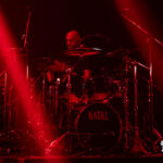 En Atlas Stone, su presencia fue especialmente notoria. Se permitió una improvisación vocal libre, casi jazzera, que flotó sobre los arreglos como un bálsamo entre tanto rigor. Con sutileza, gesticulaba hacia el público, buscando una complicidad que rompiera con la distancia impuesta por el tecnicismo. No era un frontman autoritario, ni excesivamente histriónico; era un narrador que, a pesar del vértigo instrumental que lo rodeaba, insistía en que había una historia que contar.