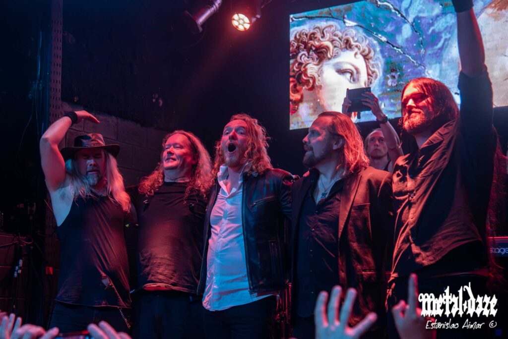 El momento más introspectivo llegó con Konevitsan kirkonkellot, pieza tradicional finlandesa que sonó pesada y oscura, recordando a los segmentos sombríos que SENTENCED solía incluir en sus discos. Fue un pasaje cargado de raíces y melancolía antes del desenlace final. En lo estético, Markus Vanhala se robó las miradas: ataviado íntegramente de negro, con sombrero y anteojos oscuros, rindió homenaje a Wayne Hussey de THE MISSION, trasladando esa impronta al terreno musical con melodías melancólicas teñidas de un inconfundible toque escandinavo.