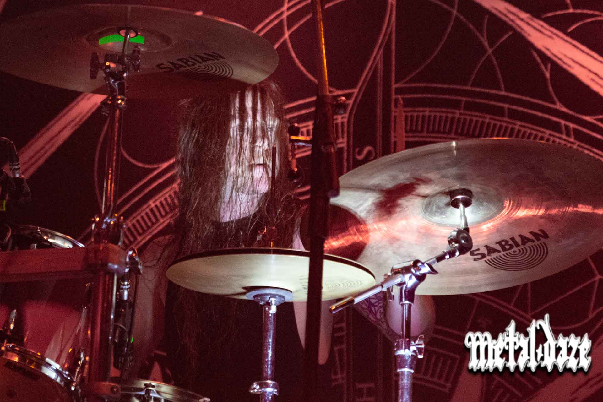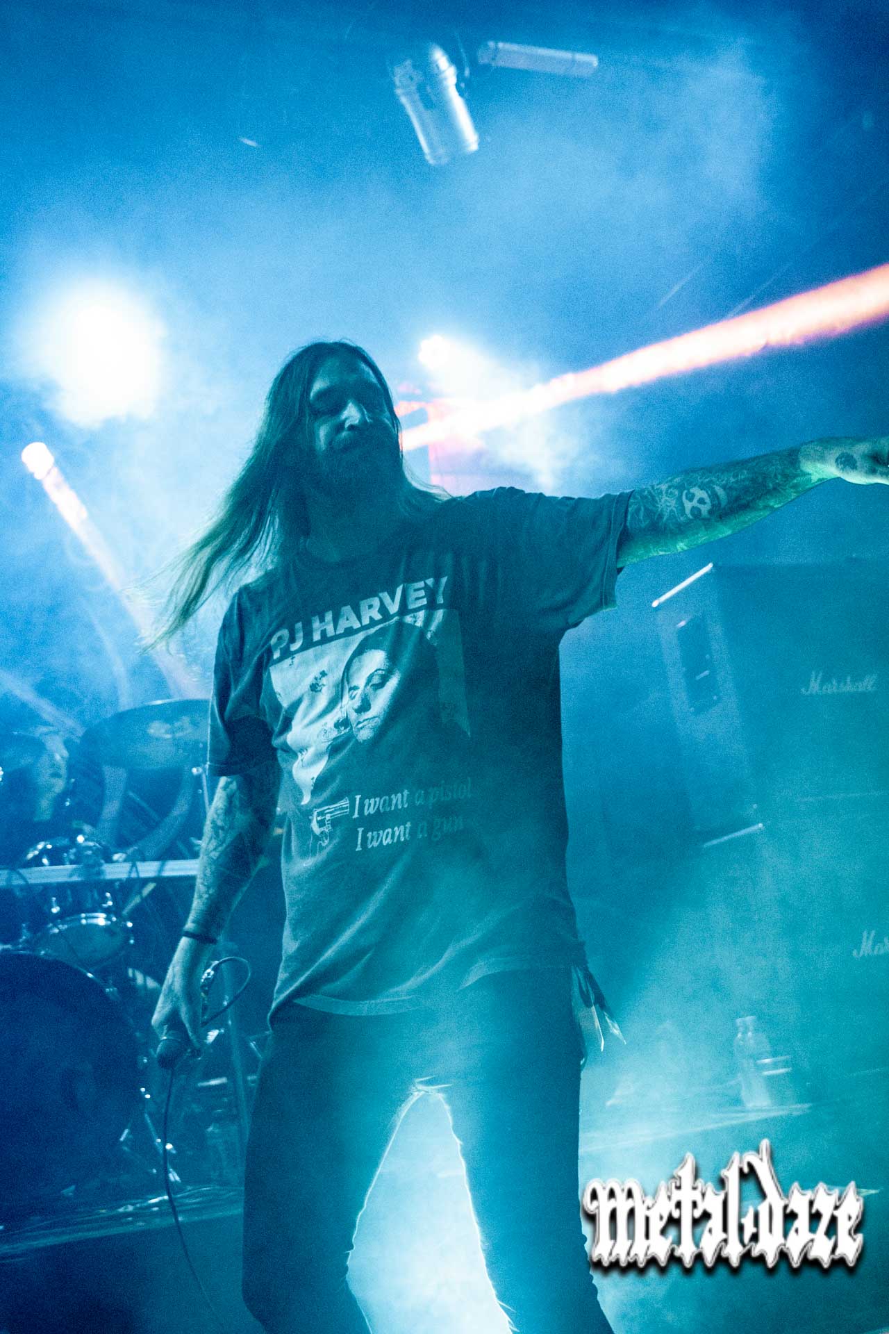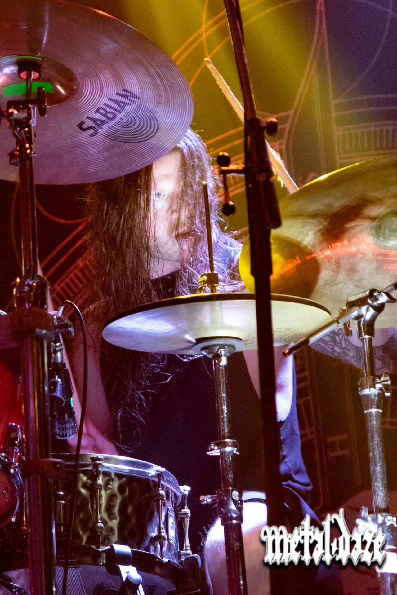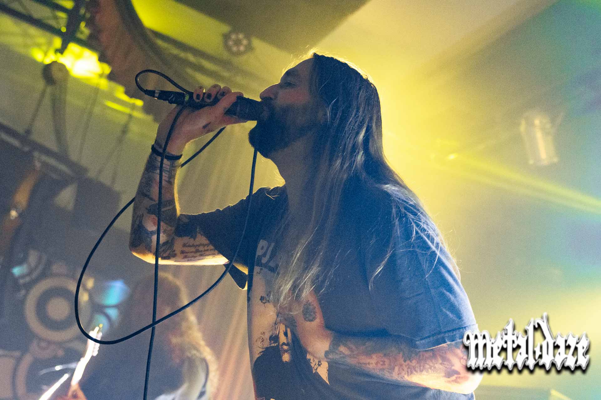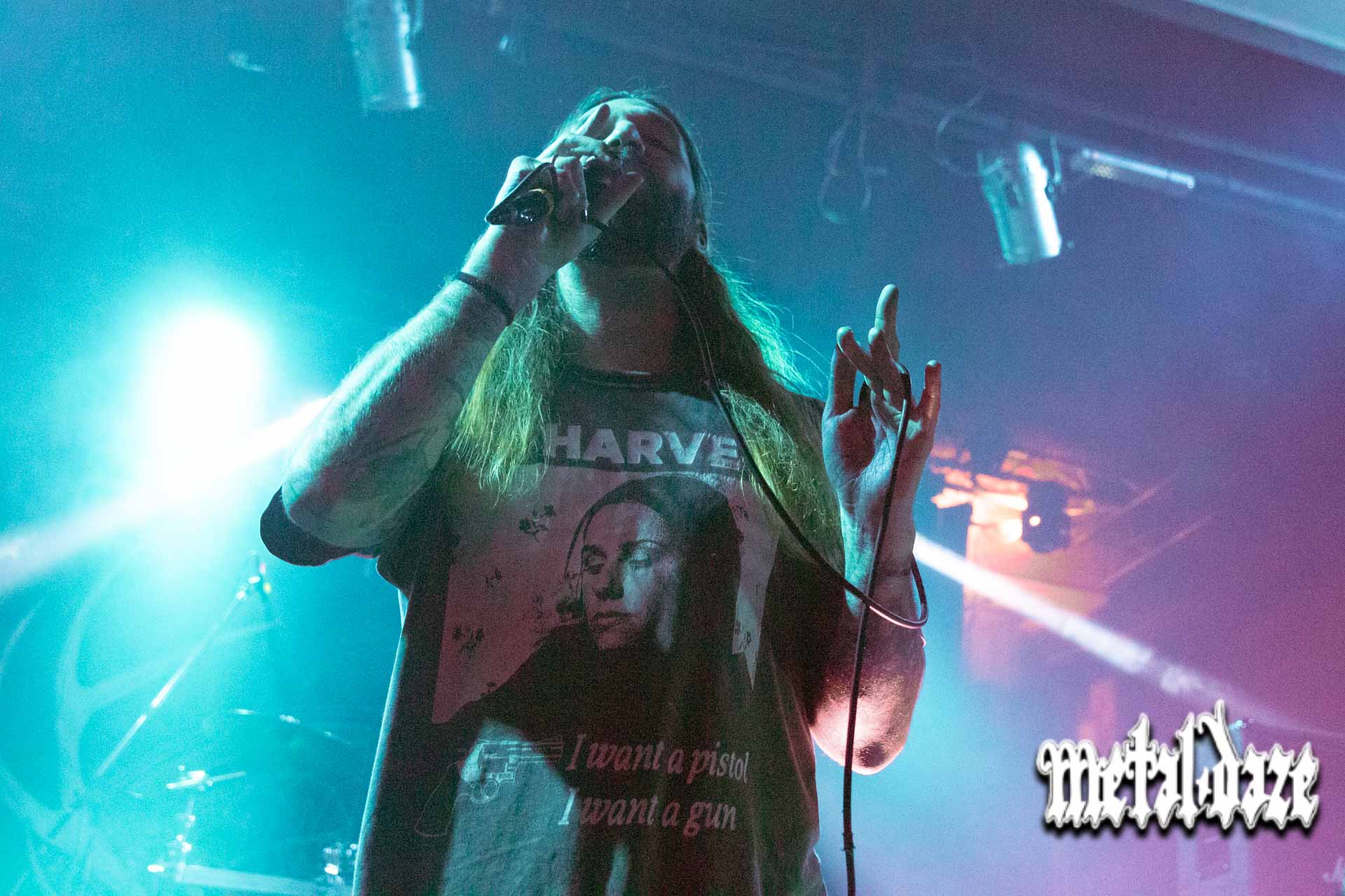 With Autumn I’ll Surrender y Funeral Dreams marcaron el momento más introspectivo. J.J. de espaldas, inmóvil en apariencia, pero vibrando con el pulso interno de las canciones, mientras Matthias Sollak desde la guitarra sostenía el equilibrio: melódico y extremo, preciso y emocional. Sollak fue el eje, el punto de gravedad que mantuvo el concierto firme cuando todo lo demás parecía a punto de derrumbarse. Las bases de teclado pregrabadas aportaron textura, profundidad y una sensación de vastedad que contrastó con el tono íntimo de la sala. El volumen, por momentos alto y saturado, añadió tensión, como si la música quisiera salirse del espacio físico que la contenía.