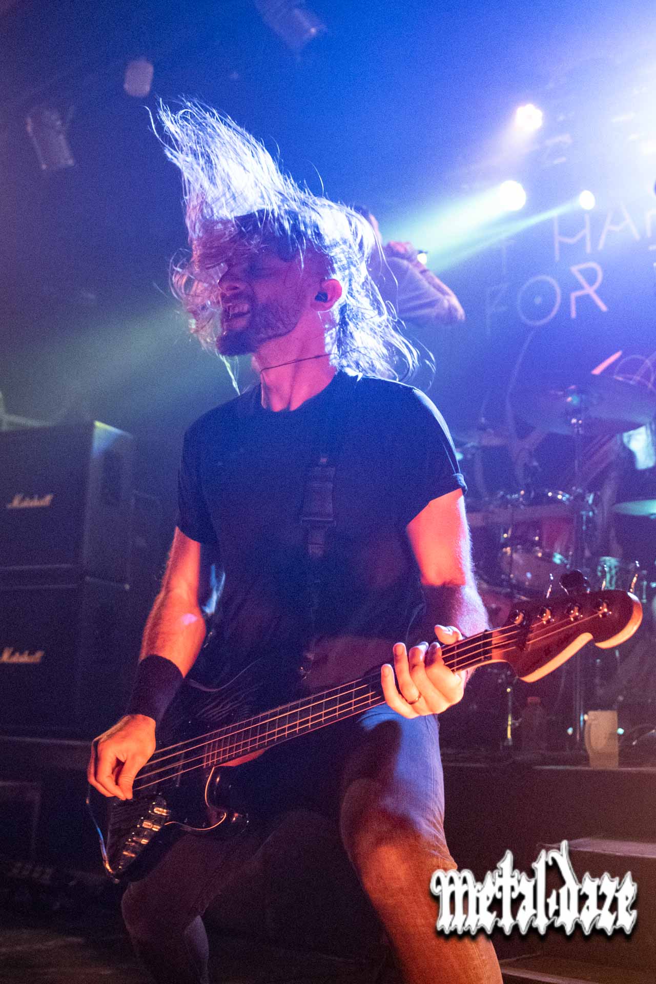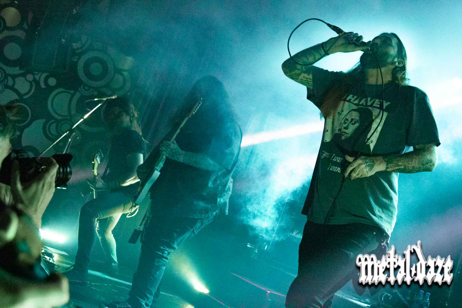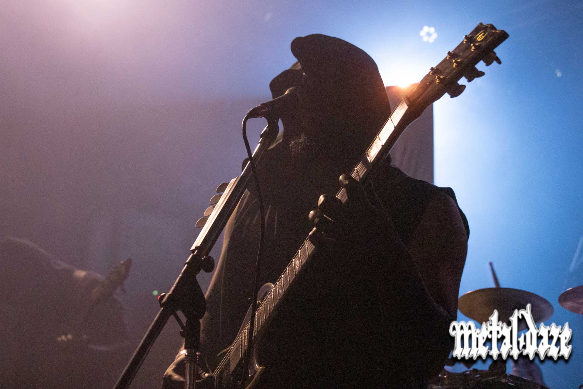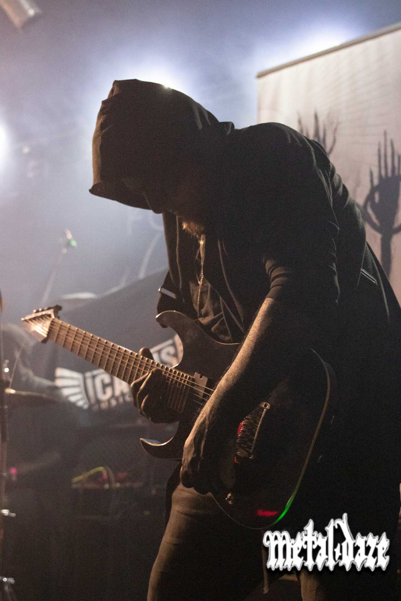 With Autumn I’ll Surrender y Funeral Dreams marcaron el momento más introspectivo. J.J. de espaldas, inmóvil en apariencia, pero vibrando con el pulso interno de las canciones, mientras Matthias Sollak desde la guitarra sostenía el equilibrio: melódico y extremo, preciso y emocional. Sollak fue el eje, el punto de gravedad que mantuvo el concierto firme cuando todo lo demás parecía a punto de derrumbarse. Las bases de teclado pregrabadas aportaron textura, profundidad y una sensación de vastedad que contrastó con el tono íntimo de la sala. El volumen, por momentos alto y saturado, añadió tensión, como si la música quisiera salirse del espacio físico que la contenía.