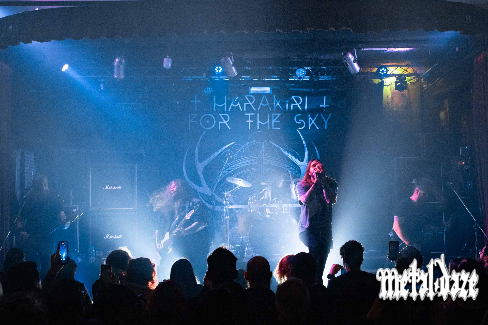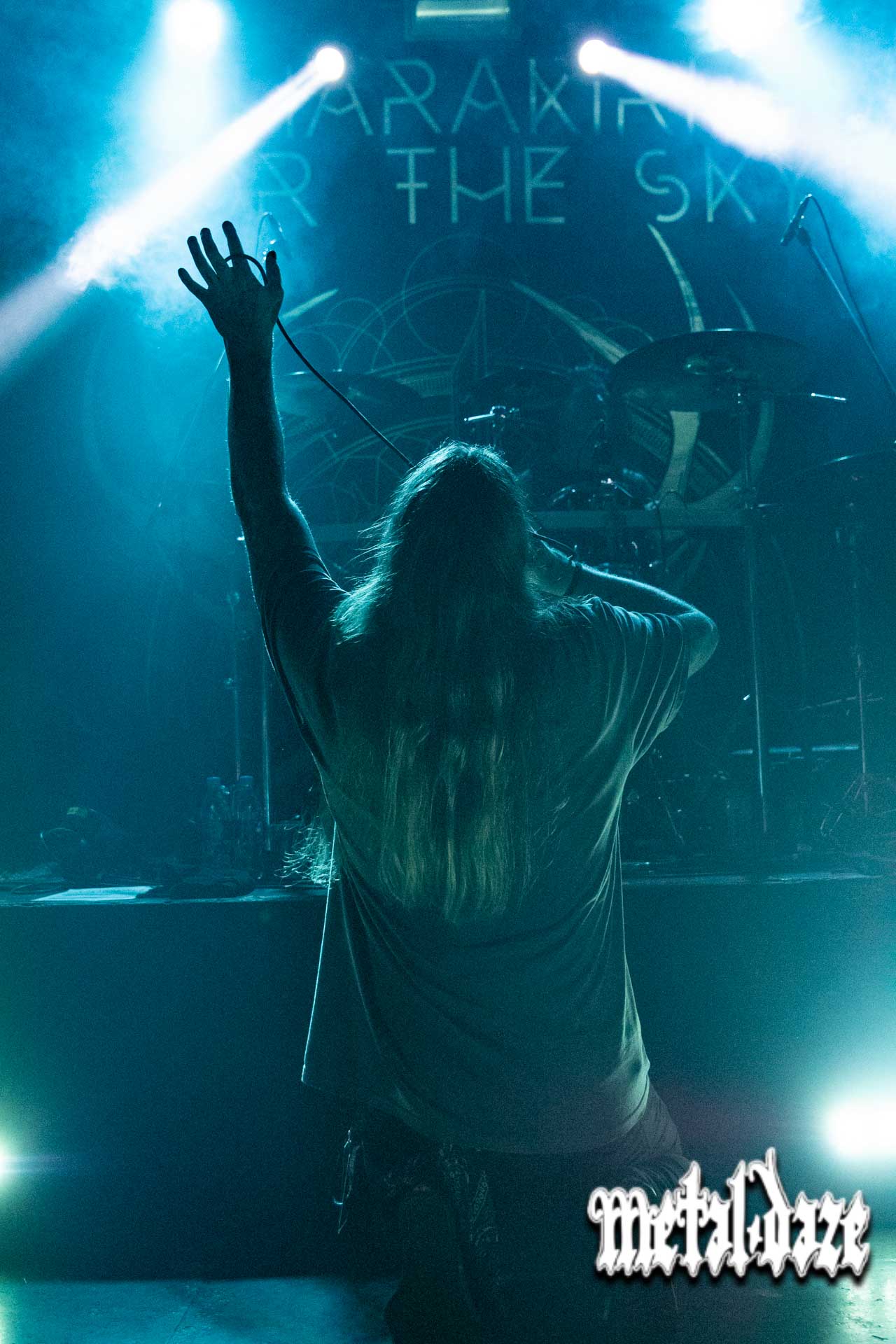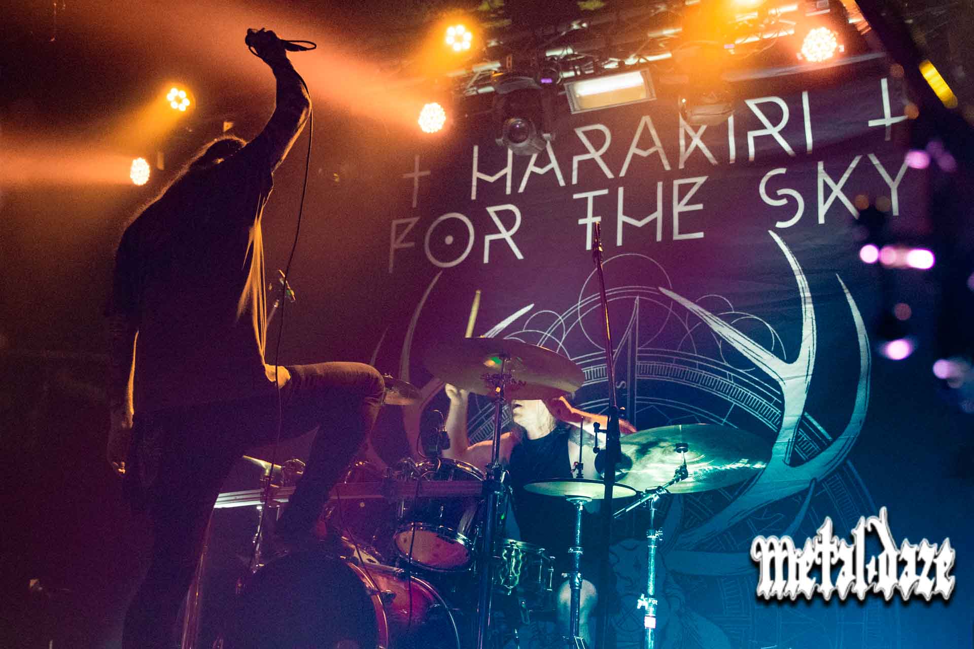 Desde Heal Me, quedó claro que HARAKIRI FOR THE SKY no iba a buscar complicidad ni respuesta. J.J., el cantante, se movió como un cuerpo tomado, entregado al desborde. Terminó el primer tema agachado frente a la batería, respirando con dificultad. En Fire, Walk With Me, el trance fue absoluto: se subió a la batería, gritó, revoleó el micrófono, se desbordó. Lo suyo no tiene nada que ver con el estatismo del black metal, sino con el nervio y la fisicalidad del hardcore. Canta como quien exorciza, no como quien interpreta. Su crudeza, su canto imperfecto, su movimiento errático construyen un lenguaje propio, más cercano al desahogo que a la performance.