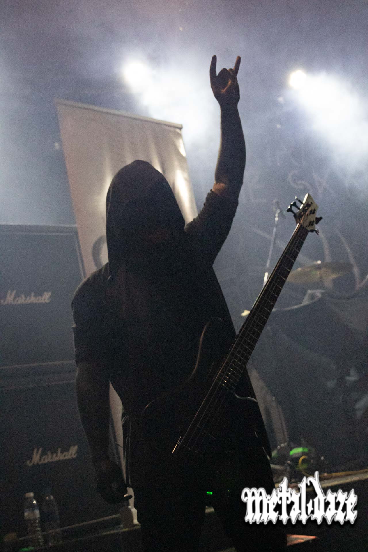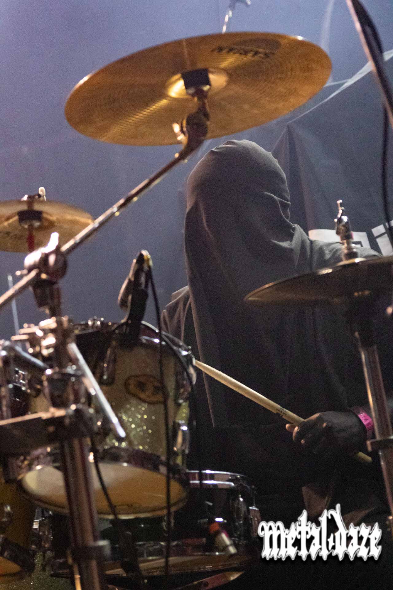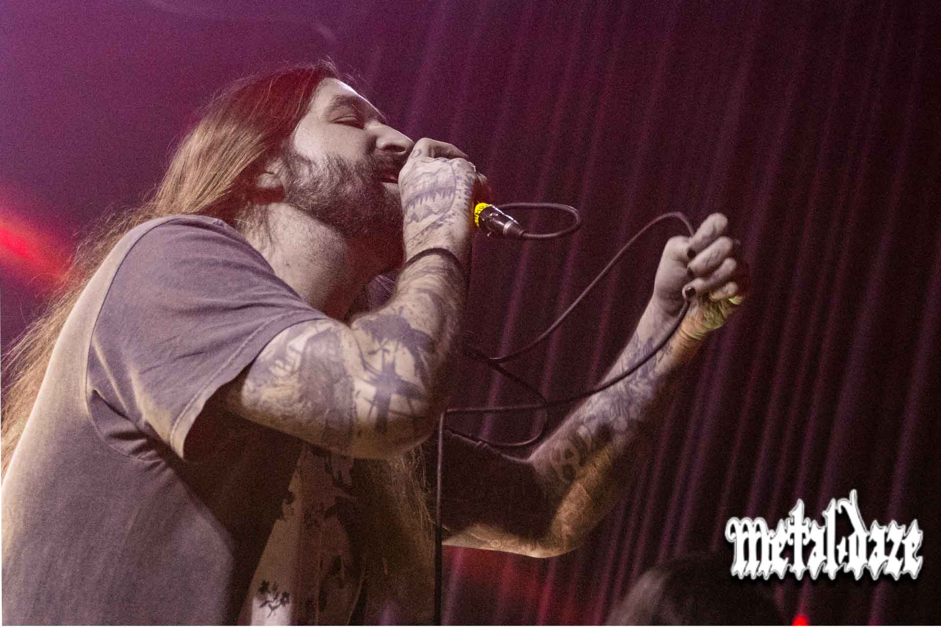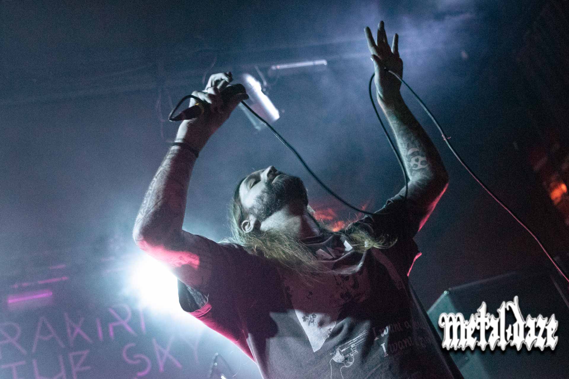 Desde Heal Me, quedó claro que HARAKIRI FOR THE SKY no iba a buscar complicidad ni respuesta. J.J., el cantante, se movió como un cuerpo tomado, entregado al desborde. Terminó el primer tema agachado frente a la batería, respirando con dificultad. En Fire, Walk With Me, el trance fue absoluto: se subió a la batería, gritó, revoleó el micrófono, se desbordó. Lo suyo no tiene nada que ver con el estatismo del black metal, sino con el nervio y la fisicalidad del hardcore. Canta como quien exorciza, no como quien interpreta. Su crudeza, su canto imperfecto, su movimiento errático construyen un lenguaje propio, más cercano al desahogo que a la performance.