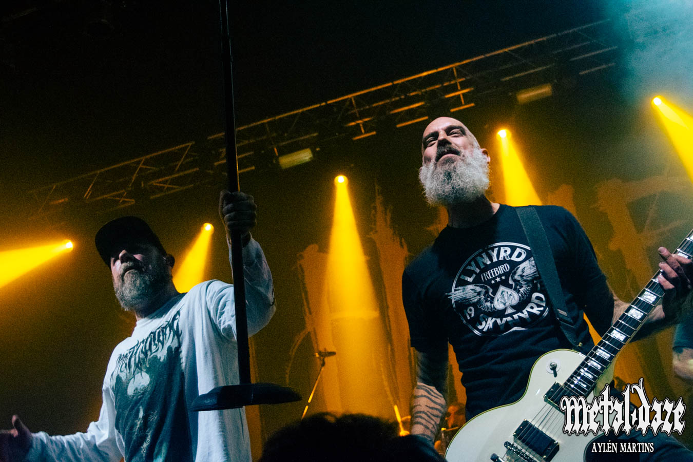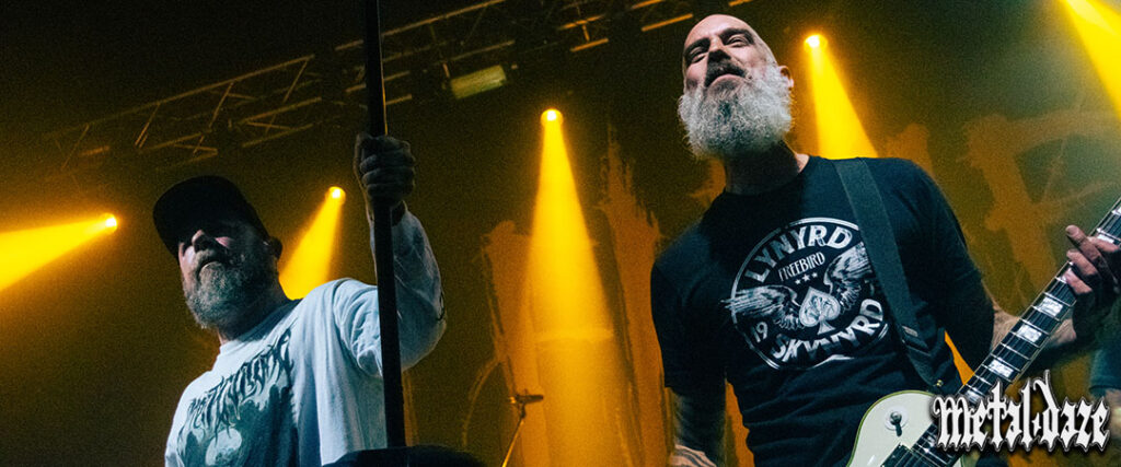 Friden agradece nuevamente arengando a que el público siga coreando el nombre de la banda (se notaba que este aspecto le llamaba demasiado la atención) y pide de la participación de todos los presentes a la hora de cerrar con Take This Life, del gran Come Clarity otra muestra de la época más prodigiosa de IN FLAMES. La banda se despide, promete volver y el líder vuelve a aprovechar para tirarle flores a la audiencia. Una audiencia que, hay que decirlo, fue el condimento ideal para una noche que se convirtió en fiesta a un recital gracias a su energía: pocas bandas que evolucionan tanto su sonido despiertan en vivo reacciones como las que se vieron en la noche del Teatro Flores. Con este antecedente, todo indica que IN FLAMES es de los números favoritos en la escena porteña.