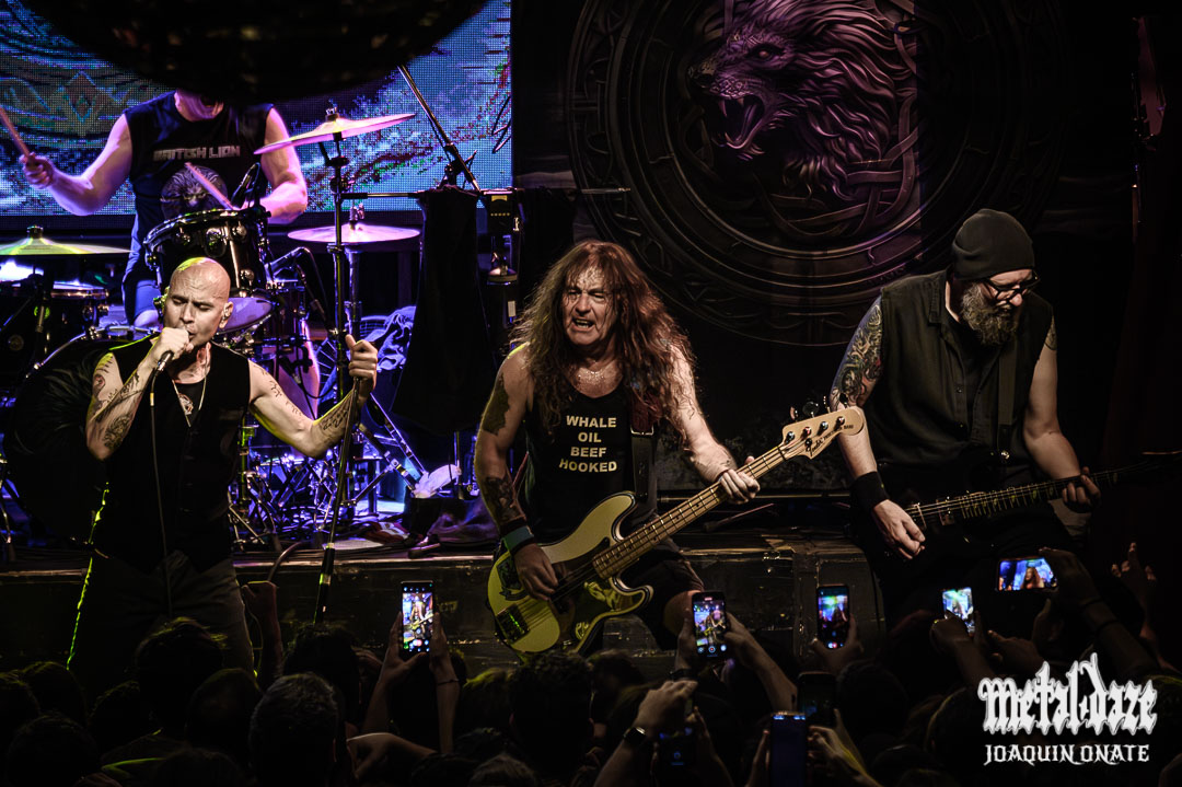 Para cuando BRITISH LION subió a escena El Teatrito lucía lleno incluyendo una curiosidad técnica que en otros shows similares no se había observado. A diferencia de la mayoría de los shows donde la consola de sonido se ubica en el piso superior del recinto, aquí el sonidista eligió una tarima ubicada en la parte de atrás del mismo en el sector izquierdo dando la pauta de que el objetivo principal era que la banda sonara perfecto. El objetivo fue logrado por lo que lo largo de diecisiete canciones el grupo pudo dar cuenta a la perfección (con un sonido claro, nítido y con un volumen justo) de la mayoría de las canciones de sus dos discos British Lion y The Burning, y estrenara dos canciones 2000 Years y Wasteland. Si bien la mayor parte del público fue a ver Steve Harris de muy cerca y a tratar de saludarlo antes o después del show; a medida que se fue desarrollando la noche que empezó con dos potentes versiones de This Is My God y Judas la sensación es que el grupo fue ganando en confianza al ver que la gente conocía sus canciones y que respondían de manera genuina a la mismas. Más allá de que en varios momentos la banda tiene una propuesta genérica y anodina (algo que sorprende si uno reconoce la habilidad de Harris para componer canciones) hubo momentos entre los que se pueden destacar The Burning, A World Without Heaven (la primera canción que escribieron juntos) Spit Fire o The Chosen Ones donde la particular voz del cantante Richard Taylor (muy prolija pero sin demasiados matices) se acopló bien a las melodías rockeras y pesadas propuestas por el grupo. Tal vez por eso cuando Lightning, Last Chance y Eyes of the Young cerraron el set, se fueron aplaudidos con la sensación de que, a diferencia de la primera visita, hubo un entretenido show que, sin descollar, terminó por convencer. Veremos en qué se convierten.