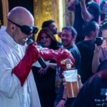 Pero sin lugar a dudas, el mayor protagonista de la noche fue Renzo Favaro (vocalista), quien se entregó al show con una intensidad fuera de lo común. Su presencia en el escenario fue magnética, pero lo que realmente destacó fue su capacidad para incorporar elementos teatrales y psicodélicos en su performance. Un momento memorable fue cuando Renzo, transformado en un “científico loco”, bajó entre el público para repartir su “poción”. La gente no pudo evitar reírse y sentirse parte de una escena sacada de una película de ciencia ficción, mientras el cantante se movía con una energía incontrolable, interactuando con la audiencia como si estuviera dirigiendo una experiencia colectiva única.
