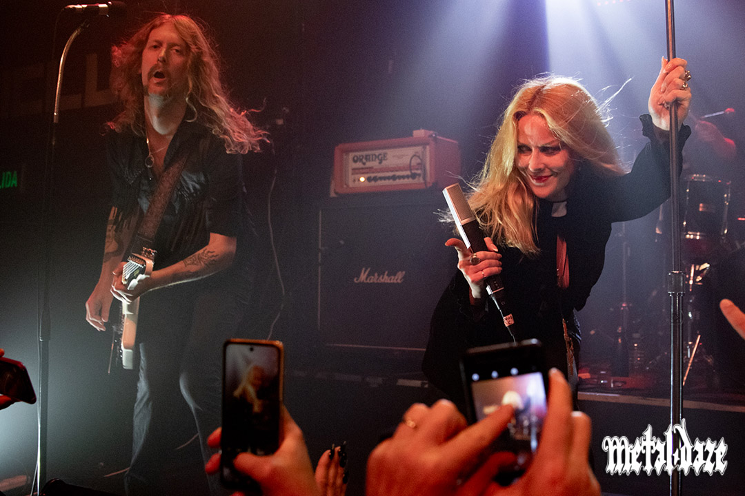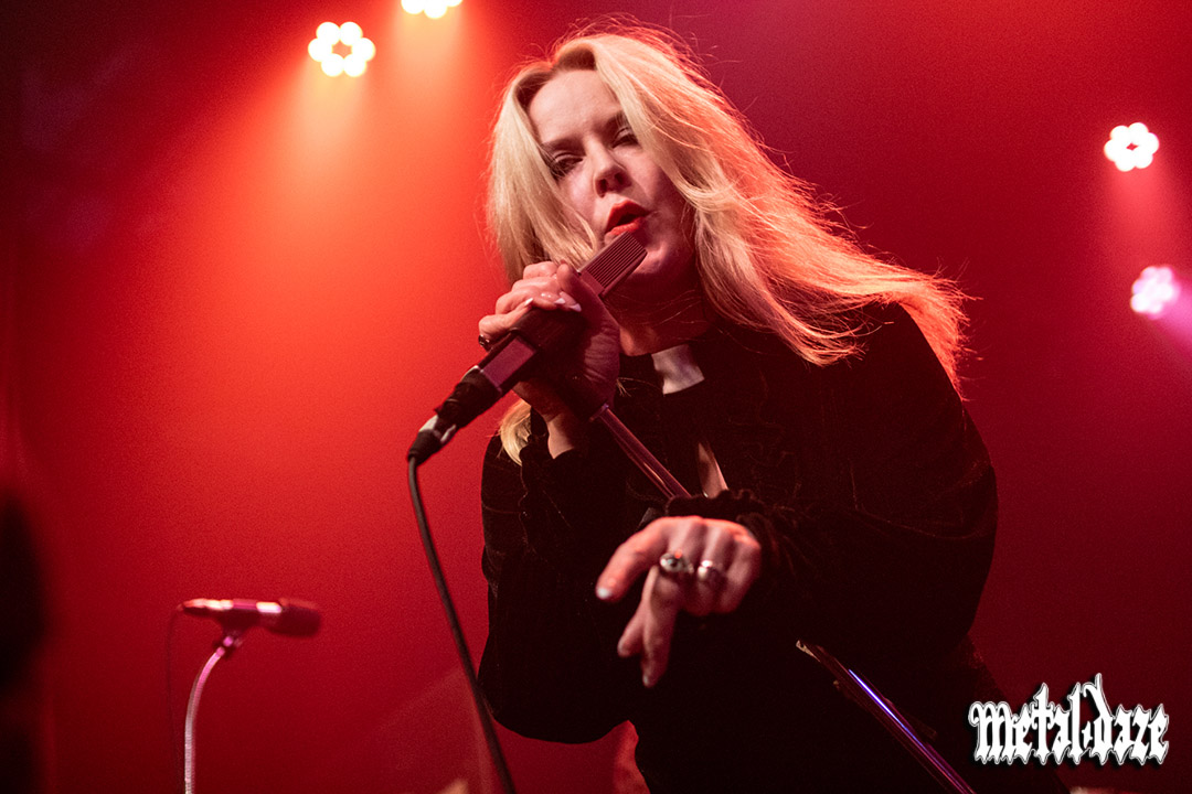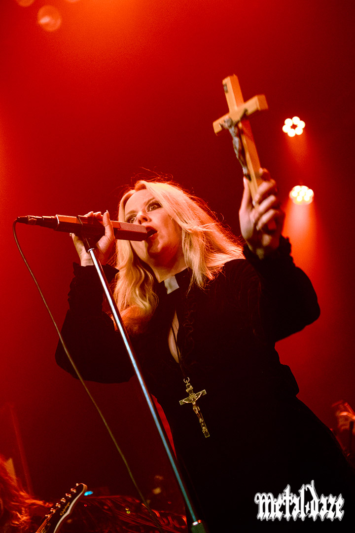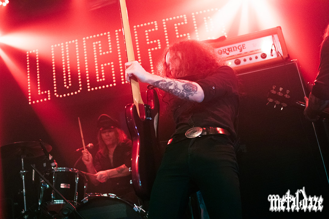 En este punto tal vez los mejores momentos de esta segunda presentación en argentina pasaron el desempeño de Johanna Sadonis en escena, más allá que es bueno reconocer que LUCIFER tiene dos atractivos fundamentales, por un lado la presencia de la rubia en voces y por el otro la figura del también líder de HELLACOPTERS Nicke Andersson quien aquí toca la batería como en la época en la que fue miembro de ENTOMBED además de componer todas las canciones con la cantante (su pareja desde hace varios años). Entre las cuestiones destacables de esta visita fue que esta vez la rubia aportó una interesante interacción con el público que le subió varios puntos al show, tomándole las manos a quienes estaban en primera fila o incluso mirando a los ojos a varios de los presentes. Si a eso le sumamos que su sentido del humor estuvo a flor de piel interactuando con sus compañeros de banda (muy graciosa la interacción con los guitarristas en “Bring Me His Head” antes de los bises reclamando la cabeza de uno de ellos), acompañando gestualmente las canciones (gesto de cuchillo en pre estribillo el temazo que “A Coffin Has No Silver Lining” del reciente disco de la banda), tomando una cruz en varios momentos del show mostrándola y revoleando para cualquier lado o presentando graciosamente a varias canciones como “referidas a la muerte” (dando la pauta de que es la temática preferida del grupo); el resultado fue un show por sobre todas las cosas entretenido lleno de melodías recordables estribillos gancheros que en siempre hicieron mover la cabeza a los presentes.
