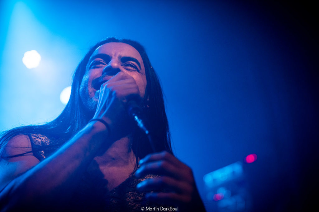 Con un bloque sin descanso de canciones pertenecientes a “SHEHILI”, su último disco de estudio editado en 2019, el Teatrito se vino completamente abajo, transformándose en una fiesta de Metal Tunecino con condimentos Argentos. El tándem “ASL” y “Born To Survive“ puso la cuestión muy arriba, las composiciones que logra la banda, en esa fusión perfecta de medio oriente y las poderosas líneas del Heavy Metal, calan muy profundo en los que amamos este tipo de expresión. Le siguieron sin respiro “You’ve Lost Yourself“, la maravillosa “Dance” y la homónima del último trabajo “Shehili“, disco que abarcó la mayor cantidad de canciones elegidas para un setlist, que podríamos bautizar como asesino literalmente, porque desde las entrañas nos revolcó a todos con esa contundencia que caracteriza al quinteto, junto a aquel inmenso disco “Tales From The sand” de 2011 del cual interpretaron tres canciones, “Merciless Times“, “Tales From the Sands“ y “Beyond The Stars“. También los allí presentes tuvimos la exclusividad de poder escuchar tres canciones nuevas, que pertenecerán al nuevo disco que verá la luz, al parecer, en el mes de septiembre. Estas fueron “Child of Prophecy“, “Let It Go“ y “To The Stars“, las tres en este caso tienen la identidad de la banda bien marcada, pero más encaminadas hacia esta beta pesada que vienen explotando, sobre todo en el último disco. Si tuviera que detenerme en la performance particular de los músicos, me centraría en destacar particularmente la base, que es la que cimenta y hace de esta, una banda sin mella. Morgan Berthet quien ya supera una década en la agrupación, es un pulpo de arena, un tipo que tiene una de esas pegadas magníficas y destructivas, pero con un groove sin igual, una bestia. Pero la bestia no está completa sin un compañero de fórmula, estoy hablando de Anis Jouini a cargo de las 4 cuerdas, quien completa esta dupla implacable. A lo largo de todo el set como para darle un marco completo a la presentación, una bailarina se presentó en escena lista danzar en alguna de las canciones con sable en mano o sin este en otros casos, y lograr darle ese cierre al clima autóctono de aquel árido lugar.