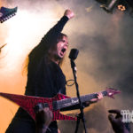 Los oriundos de Claypole arrancaron su furiosa presentación puntualmente. El death/thrash metal vieja escuela áspero y visceral se manifestó en canciones directas, de justa duración y que se sucedieron una tras otra como trompada de loco, sin medios tiempos, sin respiro. Lo mismo para “Los odio” o para cualquiera de las que sonaron. Y hasta contaron con una invitada de lujo, Mayra Cortez, que aportó hacia el final su potente voz. Una actuación que no estoy seguro que llegara a los cuarenta minutos de duración (al igual que las otras dos bandas soportes) pero que puso la vara muy alta en cuanto a fuerza y calidad.