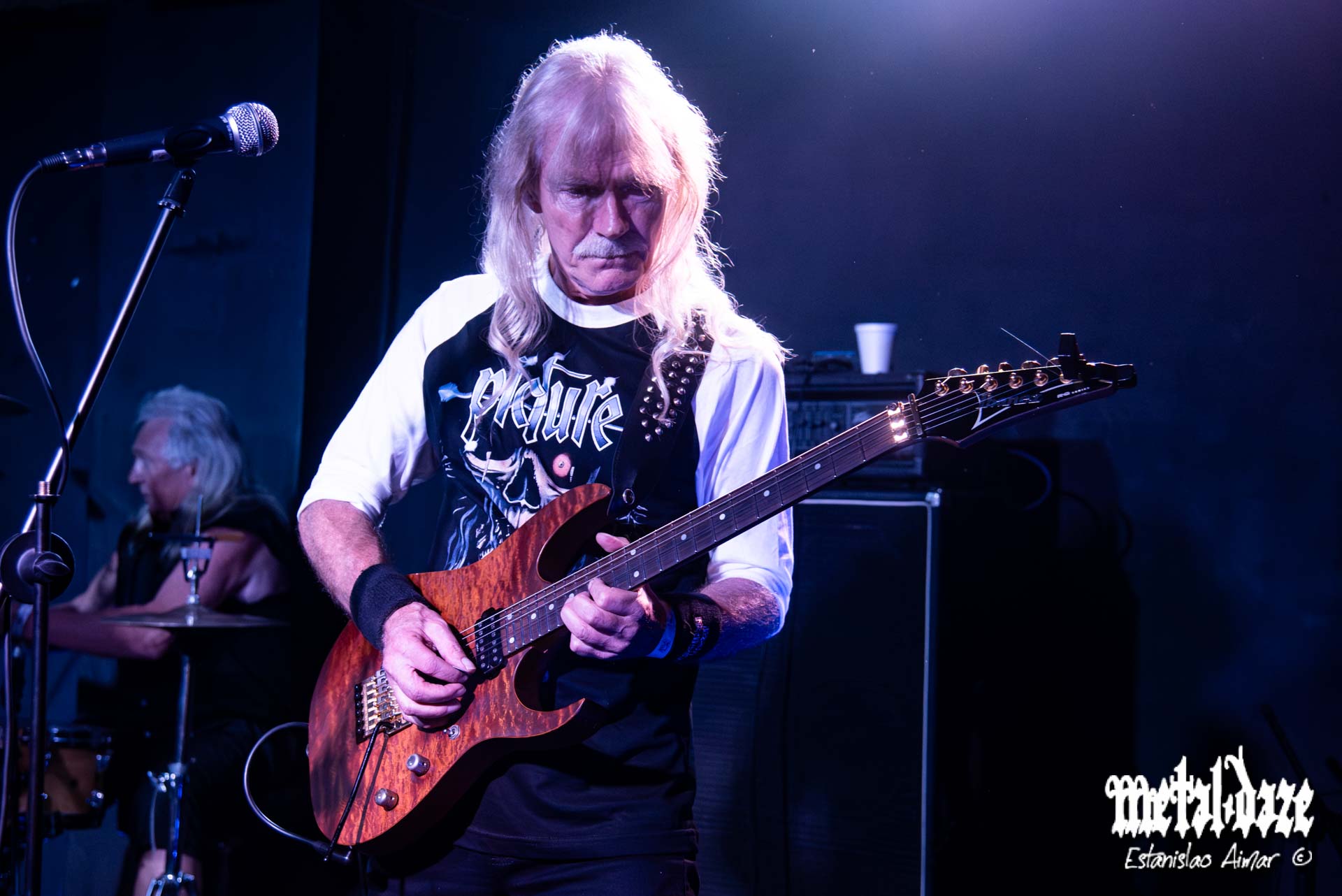 La formación de PICTURE explica buena parte de esa solidez. La base histórica —Rinus Vreugdenhil en bajo y Laurens “Bakkie” Bakker en batería— funcionó como un manifiesto viviente de lo que significa tocar heavy metal “en serio”: sin in-ears, sin click, sin guías, apenas mirándose, confiando en un lenguaje corporal trabajado durante cuatro décadas. Bakker tuvo una gran noche, con una pegada firme, moderna sin querer serlo. Vreugdenhil sostuvo el cuerpo del show con un pulso denso y noble, marcando con autoridad cada transición. Esa forma de tocar —artesanal, directa, sin artificios— fue la encarnación más pura de la hidalguía del género.