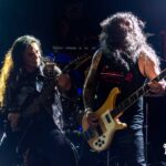 Hacia la mitad del show, la banda dejó atrás el vértigo inicial y se instaló en un medio tiempo firme, de riffs más pesados y movimientos más amplios, una dinámica que funcionó como descanso narrativo antes del nuevo ascenso final. Esa segunda sección, más densa y machacante, fue clave para darle forma a la estructura del recital: un primer tramo veloz, un centro más contenido, y un final que volvió a acelerar como si regresaran a 1984.