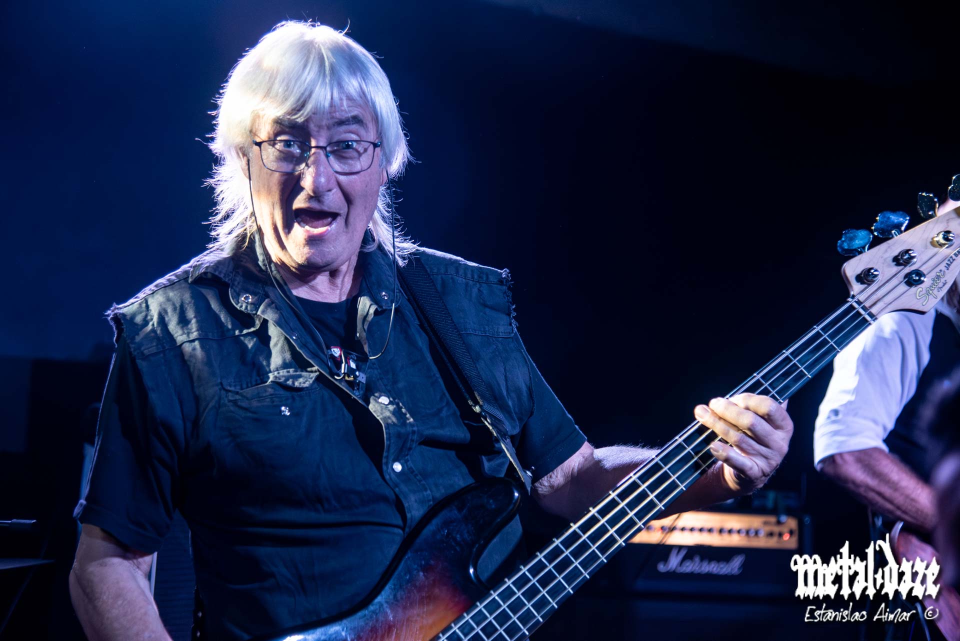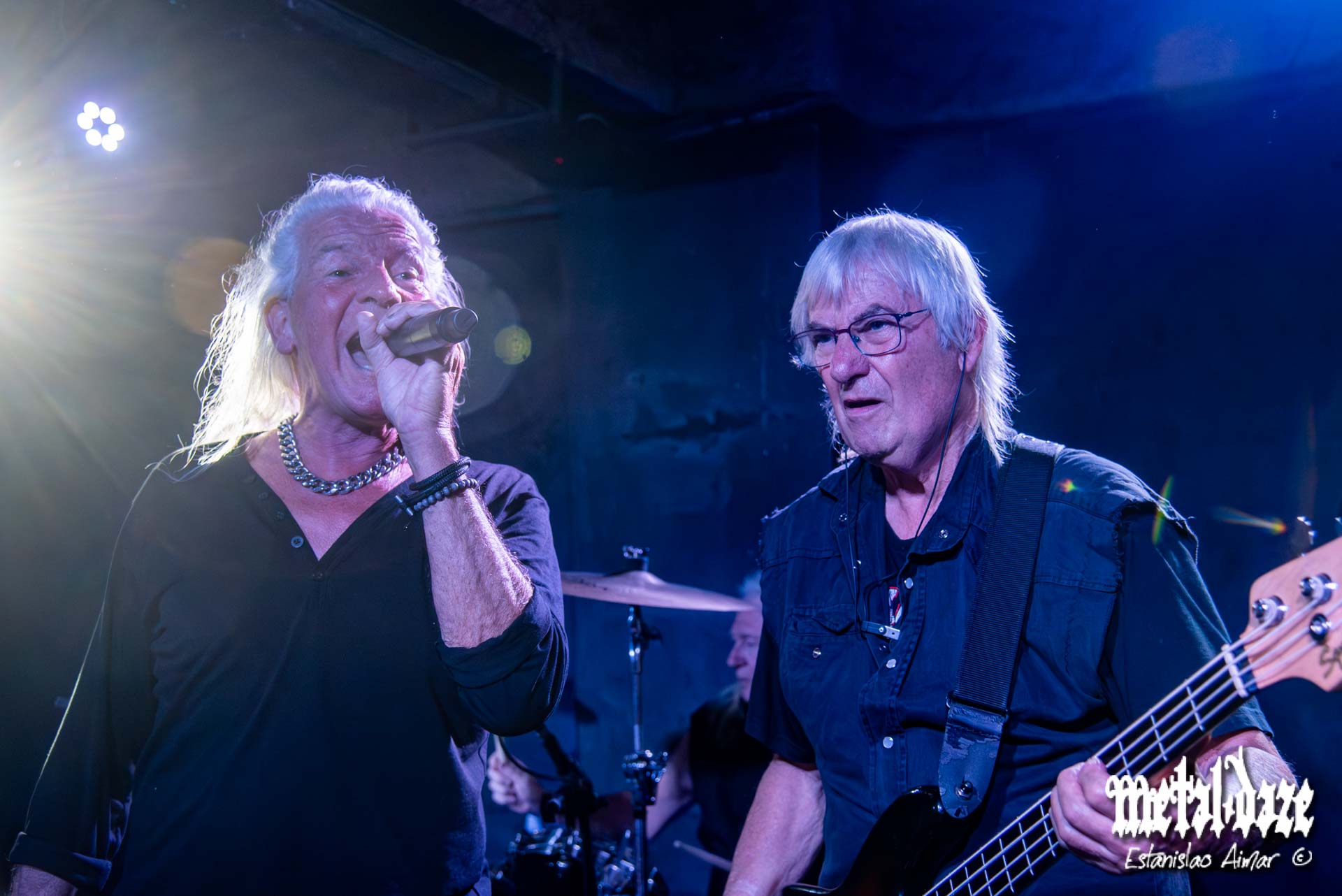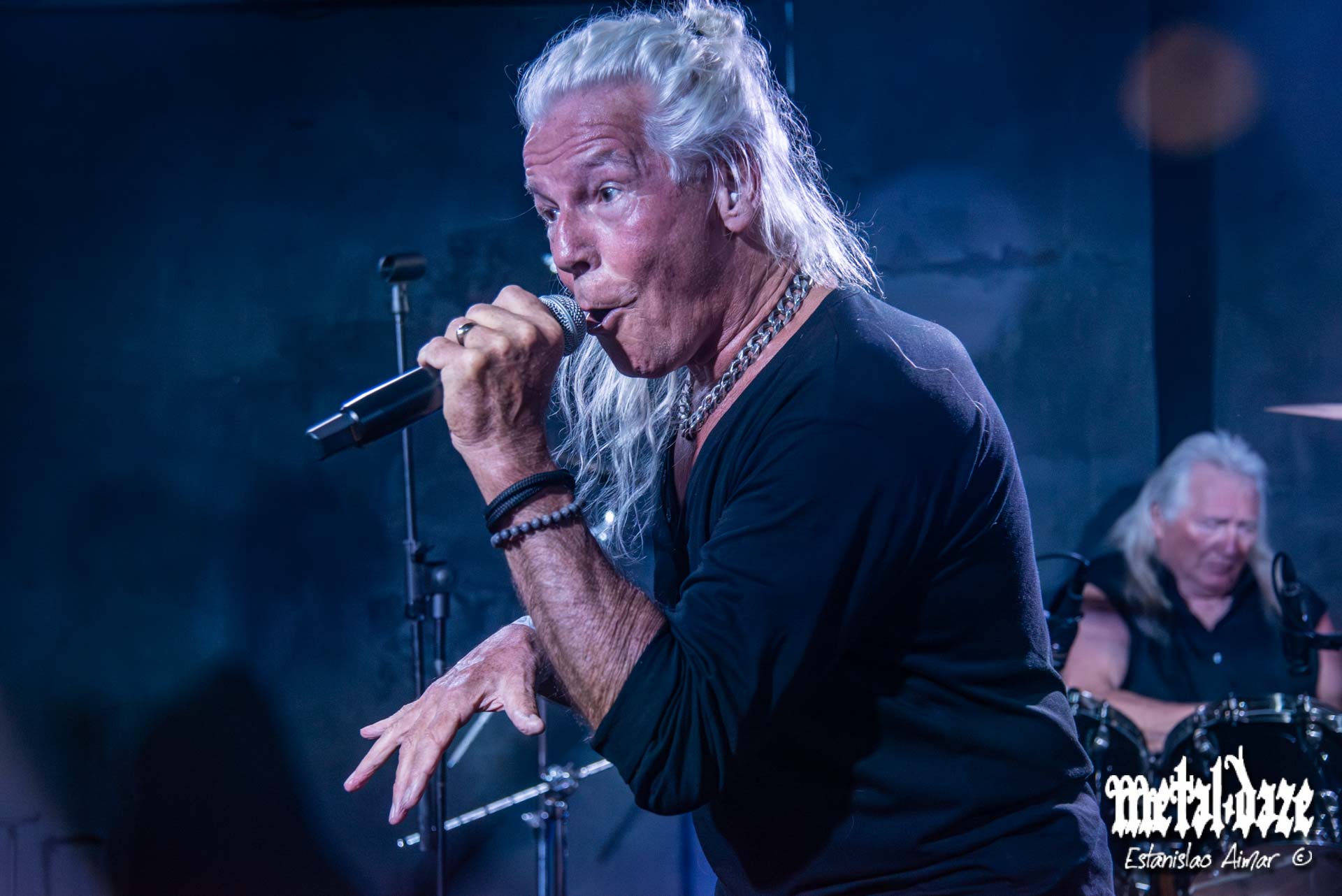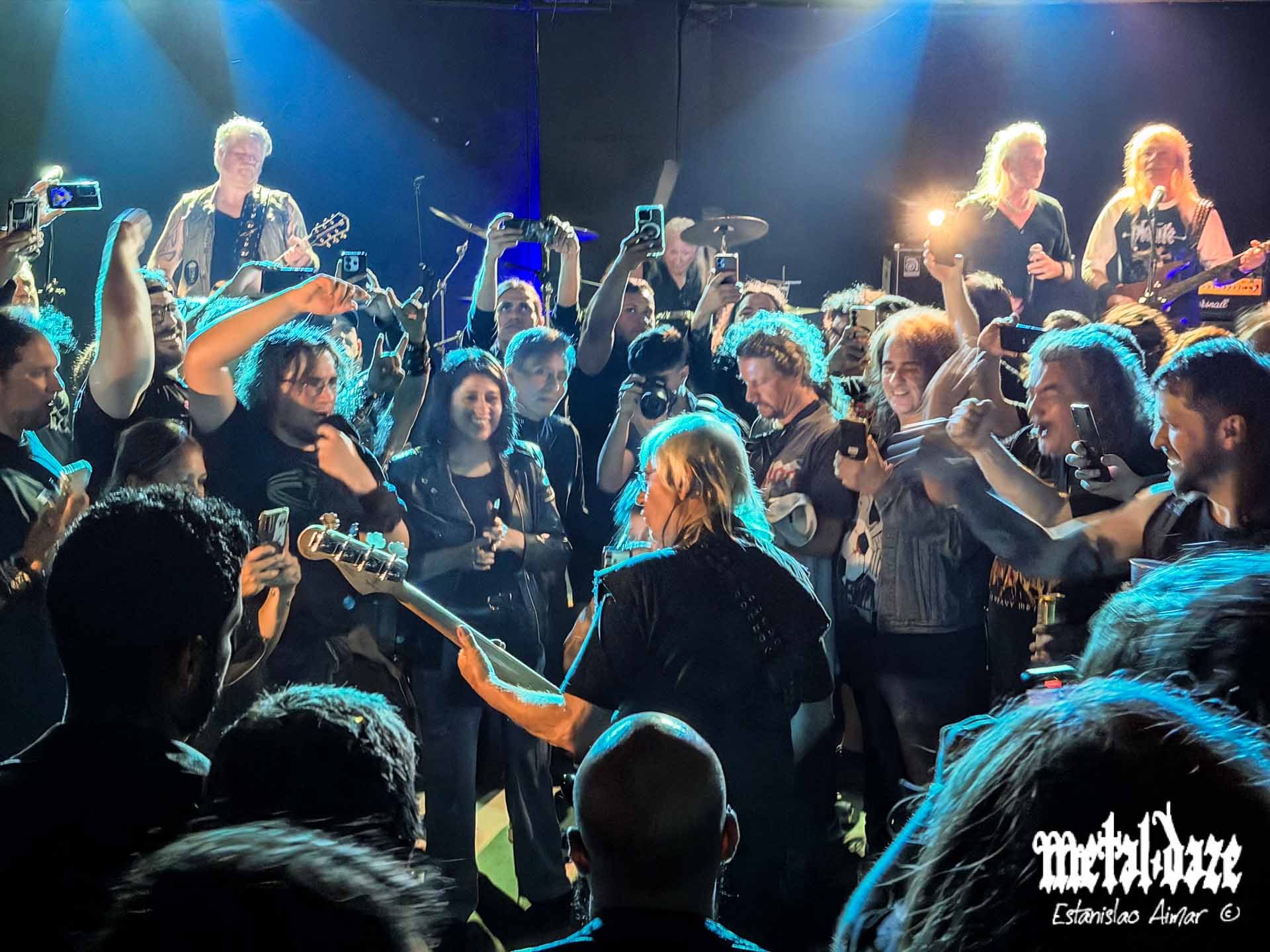 En Bula no había un público estándar. Había metaleros y metaleras de verdad: camperas de cuero con olor a historia, chalecos plagados de parches gastados, tachas que sobrevivieron a más recitales que muchas bandas modernas. Un público que parecía salido de una foto alemana de 1987, como si el universo heavy hubiera congelado su estética y su convicción a fines de esa década gloriosa. Ese público no fue decorado: sostuvo cada tema, marcó el pulso y devolvió energía con la misma hidalguía que la banda proyectaba desde el escenario.