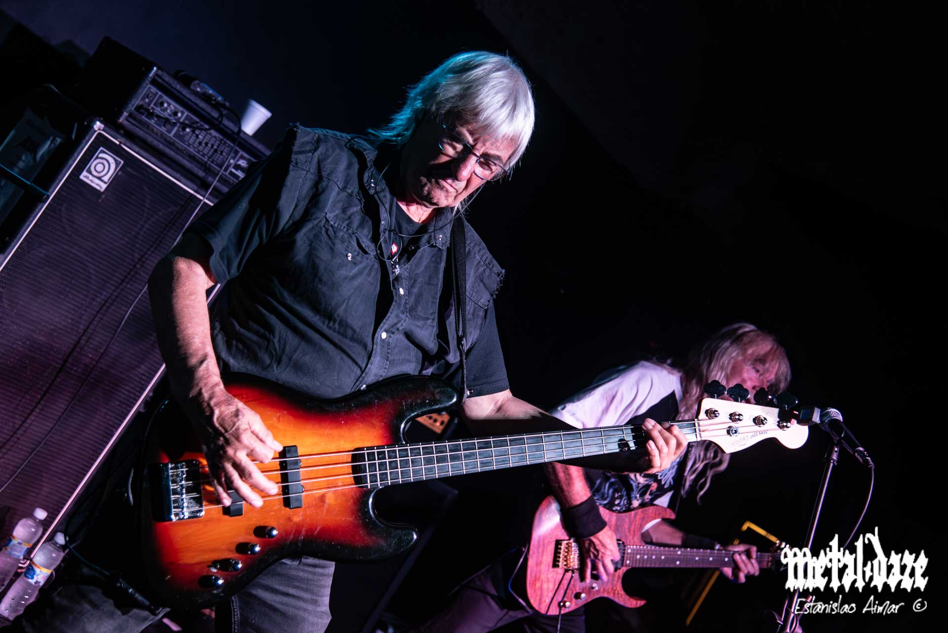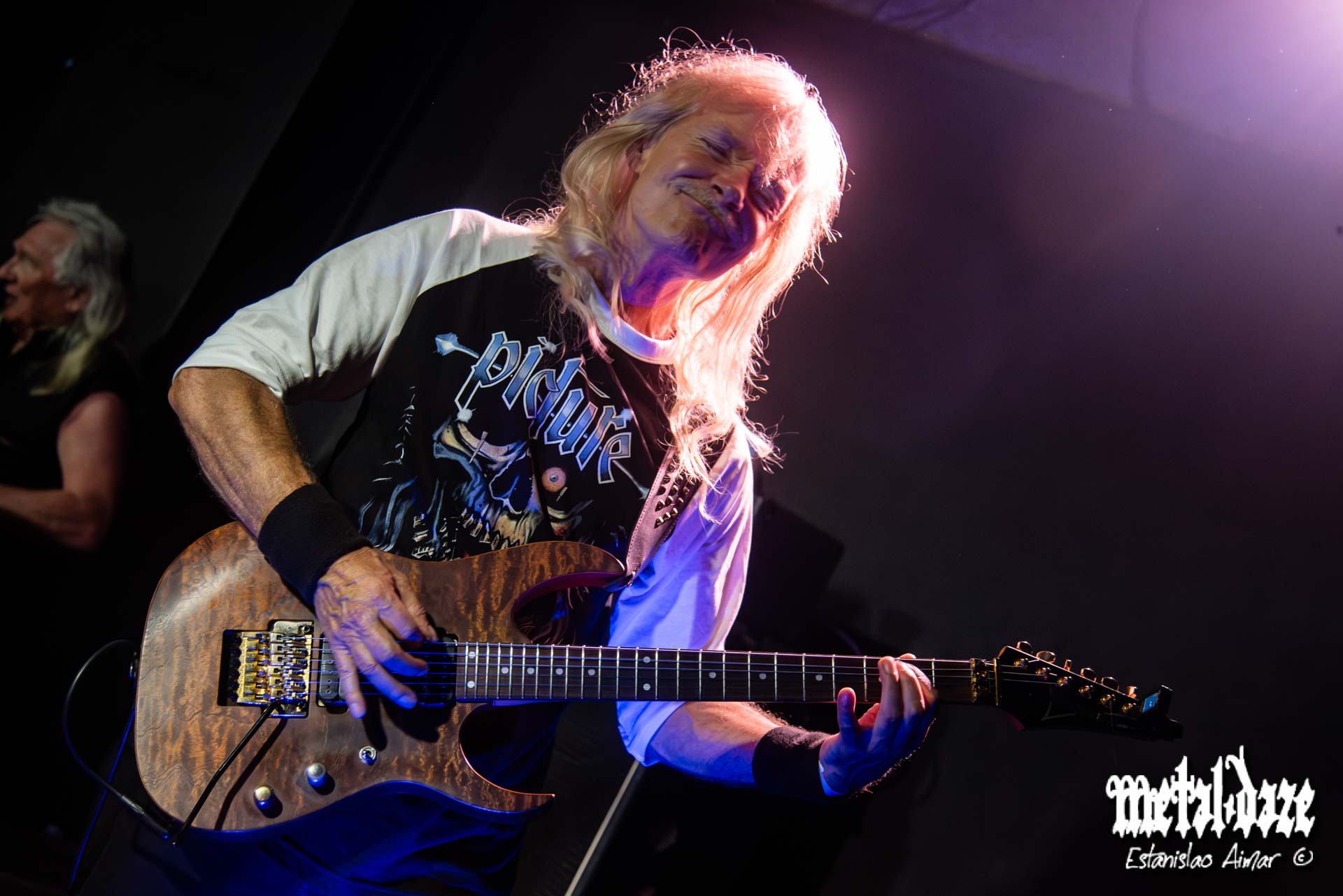La formación de PICTURE explica buena parte de esa solidez. La base histórica —Rinus Vreugdenhil en bajo y Laurens “Bakkie” Bakker en batería— funcionó como un manifiesto viviente de lo que significa tocar heavy metal “en serio”: sin in-ears, sin click, sin guías, apenas mirándose, confiando en un lenguaje corporal trabajado durante cuatro décadas. Bakker tuvo una gran noche, con una pegada firme, moderna sin querer serlo. Vreugdenhil sostuvo el cuerpo del show con un pulso denso y noble, marcando con autoridad cada transición. Esa forma de tocar —artesanal, directa, sin artificios— fue la encarnación más pura de la hidalguía del género.