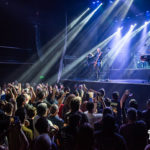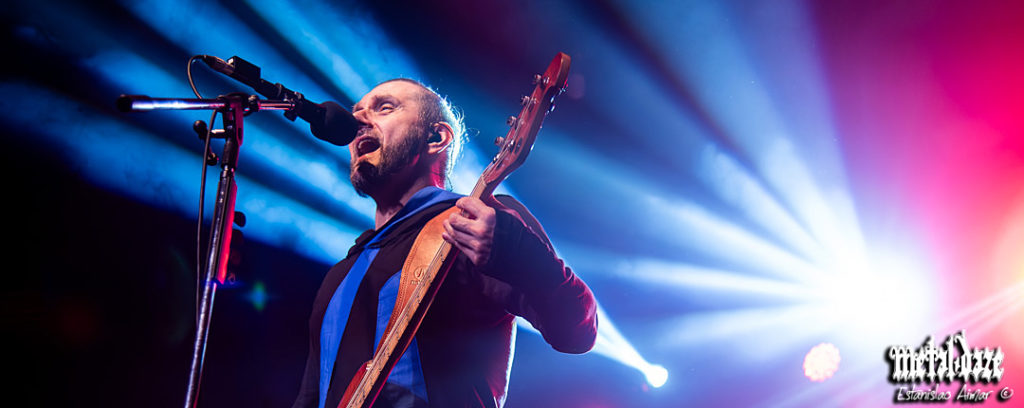 Para cuando, puntualmente a las 20:40 hs., RIVERSIDE subió al escenario, Groove estaba lejos de llegar al máximo de su capacidad total; algo que se mantendría a lo largo del show. Un público ecléctico, pero con mucha presencia de post treinta/cuarenta años e incluso “viejos progresivos de los setenta” dió la pauta que al menos en Argentina, el grupo no llega al público jóven pero sí tiene un público conocedor al detalle de su discografía. “#Addicted” (desde lo lírico una feroz crítica a las redes sociales) dejó rápidamente en claro algunas constantes que estructuraron todo el show. Por un lado, el sonido fue desde el comienzo perfecto y se mantuvo en cada una de las canciones de la noche. Sin exagerar, el sonido logrado fue el mejor que, quien escribe, le escuchó a una banda en un local como Groove que suele ser desafiante a la hora de encontrar un buen audio. Por el otro, esta primera canción mostró con claridad, la dinámica que el grupo propone desde el escenario. En este sentido, no fue casual que el ritmo y la estructura de la canción fueran sostenidas por el bajo omnipresente de Mariusz Duda y los arreglos de teclados y sintetizadores de Michał Łapaj, rodeado de sus instrumentos como los clásicos tecladistas del género en los setentas; desde la interacción de estos dos aportes y en el protagonismo que se repartieron, a medida que fueron desarrollando las canciones que fueron creciendo en intensidad a lo largo de la noche.