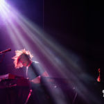 La oscuridad de “Panic Room”, propia de la primera época de la banda, encontró la densidad y potencia necesaria para brillar sostenida en un público que empezó a hallar su protagonismo cantando el estribillo de la canción, mientras Łapaj ensayaba algunos pasos de baile siguiendo la melodía de su instrumento. Promediando el tema, la banda comenzó a mostrar su particular sentido del humor, quedándose completamente estáticos durante varios segundos, generando la sonrisa de los presentes. El final de la canción coincidió con Duda tomando el micrófono para presentar a la banda, mencionando que el show era histórico para los presentes por ser la primera vez que la banda venía a la Argentina en sus veinte años de historia; “Más vale tarde que nunca” dijo sonriendo. “Landmine Blast” y “Big Tech Brother” fueron las primeras representantes del reciente disco de la banda que, como era previsible, sería el que más presencia tendría a lo largo de la noche. En la primera, el bajo marcó con soltura el ritmo de la canción mientras que el resto de los instrumentos aportaron lo suyo desde la simpleza de los arreglos. El momento del solo, donde la combinación entre el bajo y el aporte de los teclados y synths fue evidente, fue una verdadera lección de cómo construir una canción redonda sin caer en lugares comunes. En este sentido, la otra canción mencionada, llevó esta cuestión todavía más allá.