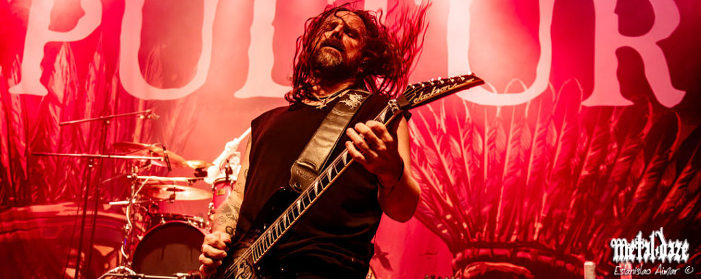 Luego de algunos minutos de espera, donde se pudo observar corriendo a los plomos de acá para allá, SEPULTURA subió al escenario con un inmenso telón de fondo detrás que incluyó el logo de la banda y una muy linda ilustración de una pareja de indígenas que le puso colorido al escenario. Con la idea de celebrar los 40 años de existencia, y al mismo tiempo, despedirse de los escenarios, el inicio del show fue con la grabación de la canción “Policia” en la voz y música de la legendaria banda brasileña de punk TITAS. El tema, con claro contenido anti represivo tuvo una versión propia por SEPULTURA incluída, como bonus track, en “Chaos A.D.”. A partir de ese momento, estuvo presente como cierre o como comienzo en una gran cantidad de show de los brasileños, por lo que su presencia fue más que lógica. Luego, una especie de compilación que incluyó una detrás de otra, intros y comienzos de distintas canciones de la banda, en lo que fue un lindo guiño a la historia, la iluminación dejó ver a la banda sobre el escenario para empezar formalmente con “Refuse/Resist” y “Territory”, dos de los más grandes clásicos del grupo. El objetivo fue claro: introducir al público en el clima del show, algo que se logró rápidamente. El sonido fue claro y potente durante toda la noche, una característica que se sostuvo a lo largo de un set donde la participación del público fue intensa pero dispar. En las canciones de la época clásica de la banda (pre “Roots”), el público estuvo enganchado y activo; mientras que en el resto, lució expectante, más allá de algunos quienes también disfrutaron de las canciones.
