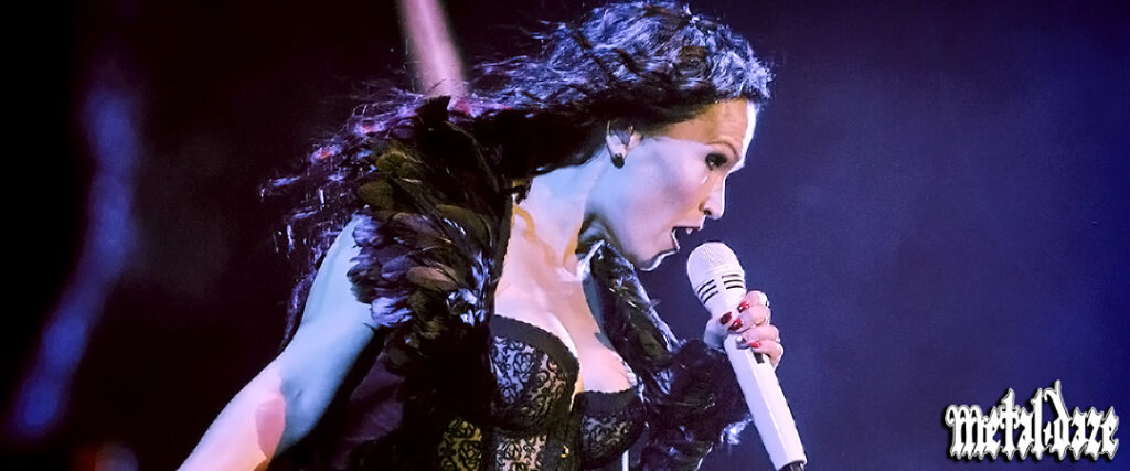 Mientras se reacomodaban los músicos, ella se quedó sentada en el teclado, según contó hace mucho que no lo tocaba, pero esta noche era algo especial y nos quería regalar algo como tal, “Vuelvo a casa” se la escuchó decir. Invitó a Elize de AMARANTHE y Charlotte de DELAIN al escenario para que la acompañaran en “Together”, un tema que como explicó, está incluido en “From spirits and ghosts (Score for a Dark Christmas)”, un disco navideño que fue lanzado la semana anterior, y que no lo había presentado en vivo aún, teníamos el privilegio de poder escuchar por primera vez ese hermosa obra musical.
