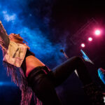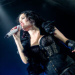 El momento emotivo queda de lado cuando lanza la pregunta si queremos más, algo un poco más y haciendo el gesto de los cuernos metaleros sabíamos que venía definitivamente algo más arriba. Asi llegó “Love to hate”, “Victim of ritual”, “Undertaker” y “Too many”. Todo en el ambiente hacía sentir que la gala iba llegando al final. La banda completa se va del escenario para volver a los minutos, ella como un ángel, con un radiante vestido blanco. Éste fue el momento elegido para presentar a los músicos que la acompañaban esta noche: En teclados, Christian Krestschmar, batería Timm Schreiner, en bajo Kevin Chown, en guitarras Alex Scholpp, quien la acompaña hace ya 10 años y Julian Barret, y en el cello Max Liljay; también quiso agradecer a todo su equipo técnico.
