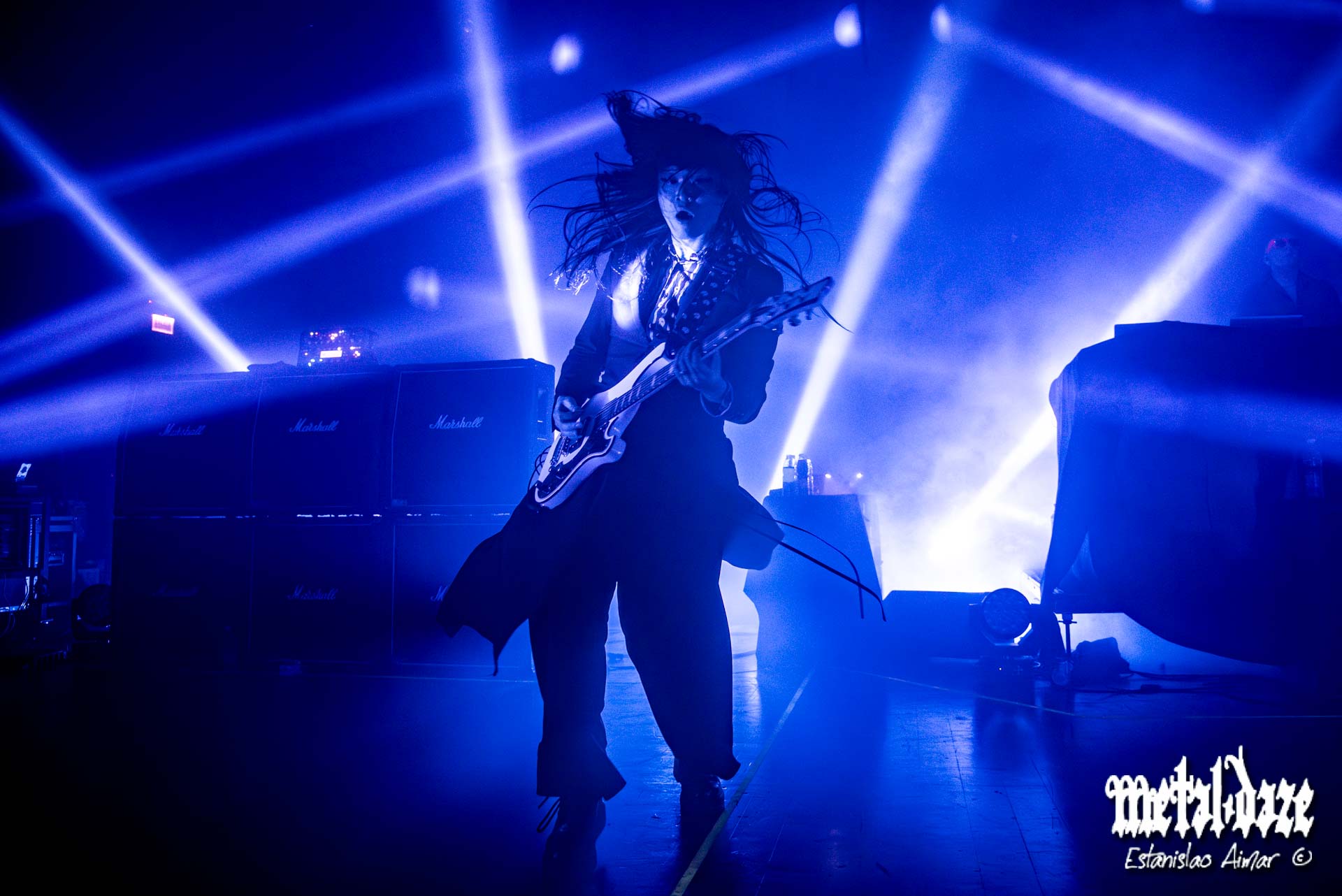 La formación actual de THE SISTERS OF MERCY tiene tanto de presencia escénica como de música. Chris Catalyst, hoy a cargo de operar al implacable Doktor Avalanche, lo hizo con una arrogancia bien entendida: en varios pasajes se servía un trago y fumaba mientras dejaba correr las programaciones, observando a la banda casi como un espectador privilegiado, dueño del pulso que sostiene todo. Al frente, Kai aportó frescura y una androginia magnética que jugaba con lo visual y lo performático, desplazándose con elegancia mientras sumaba texturas punzantes. A su lado, Ben Christo se encargó de las guitarras más filosas, repartiendo riffs en tándem con Kai, salvo en el inicio de los bises, donde tomó el bajo y le dio un espesor distinto al sonido. En el centro, por supuesto, la figura inmutable de Andrew Eldritch, imponiendo presencia desde las sombras, con ese magnetismo que convierte cada gesto en un acto de autoridad. Y lo más insólito: ver a una banda de rock sin batería en escena, pero que, aun así, suena pesada, extrema e ignominiosa, con un pulso malévolo que hace vibrar todo el cuerpo.