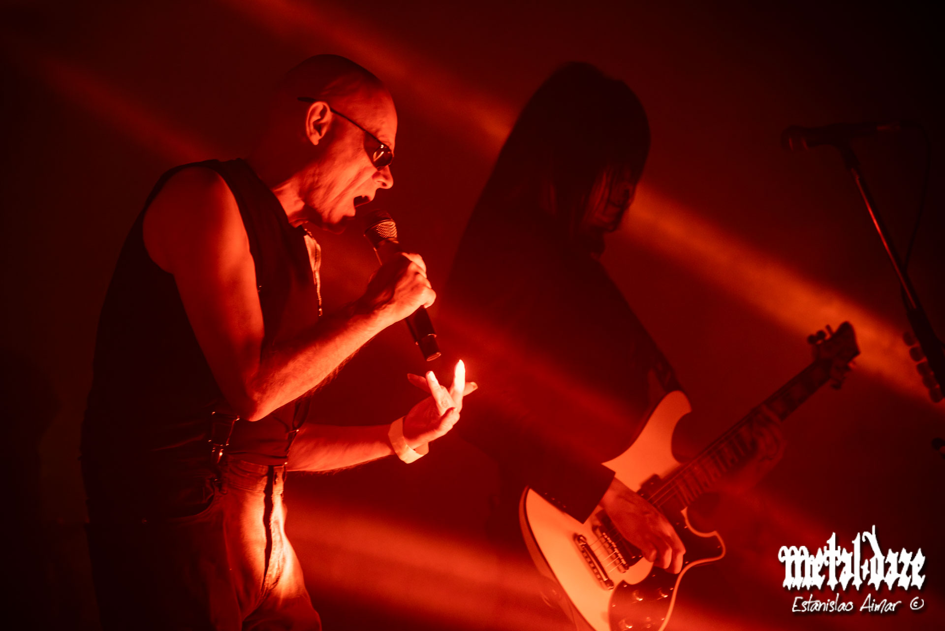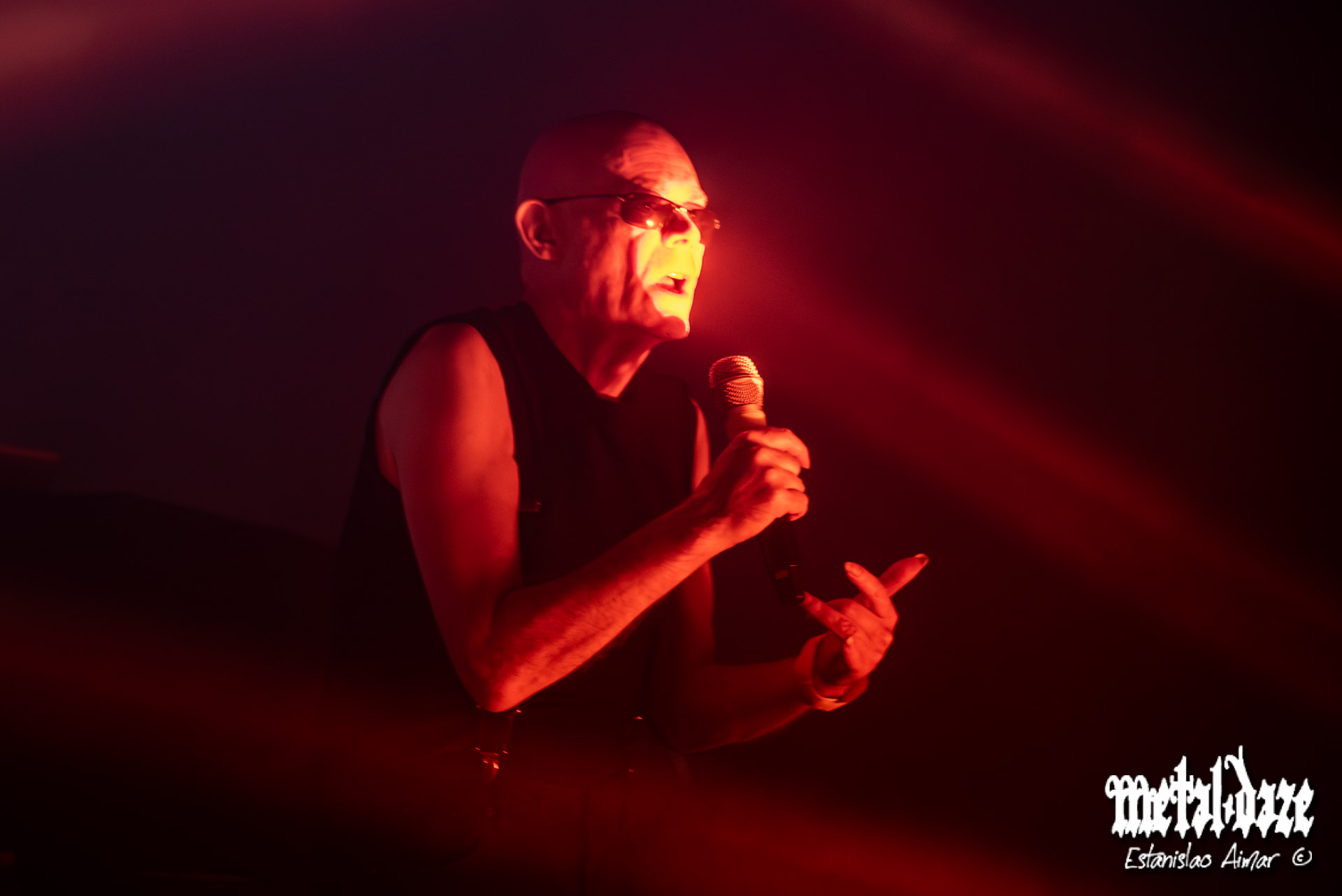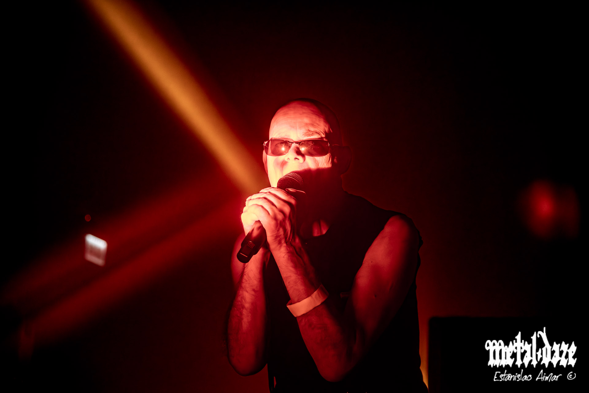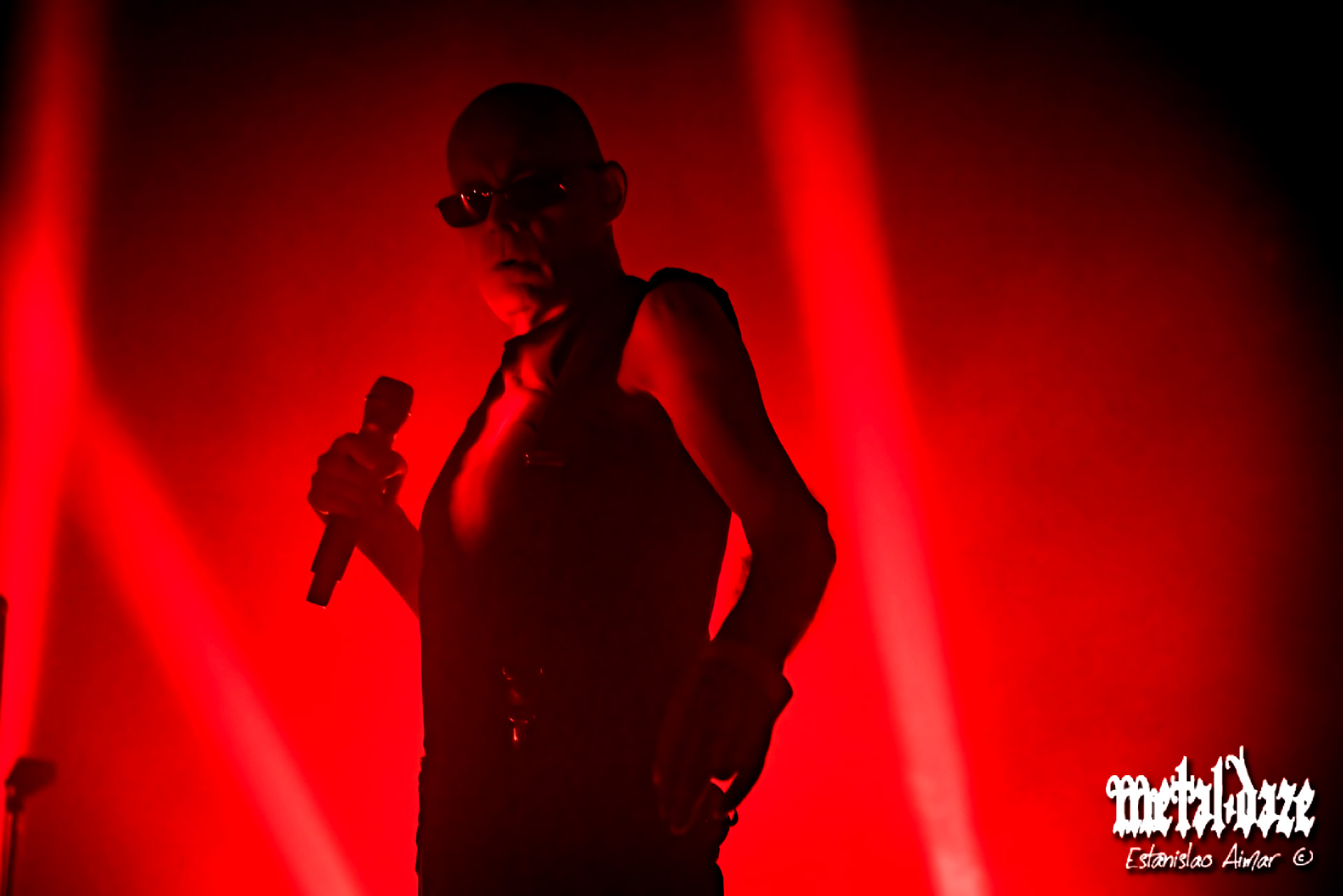 Andrew Eldritch apareció como un ser distante e introspectivo, blindado tras anteojos negros y una economía de movimientos que roza lo ritual: gestos maquinales en el escenario, la silueta recortada por la luz roja y ese timbre de humo que ordena el clima a voluntad. Por momentos fue un vampiro del expresionismo alemán, afilado y espectral, devorando la atención con pura presencia; por otros, un robot sin alma, exacto y glacial, como si la música fluyera a través de un organismo sintético. Hubo pasajes en los que cantó de espaldas al público, dejándonos la sombra como única mueca, y otros en los que arengó a la gente con autoridad seca, midiendo el fervor como quien controla un experimento. Eldritch encarna hoy un ser oscuro y tétrico, a la altura de su leyenda: no busca simpatía ni nostalgia; impone una liturgia gótica donde cada gesto es frontera y cada frase, una orden.