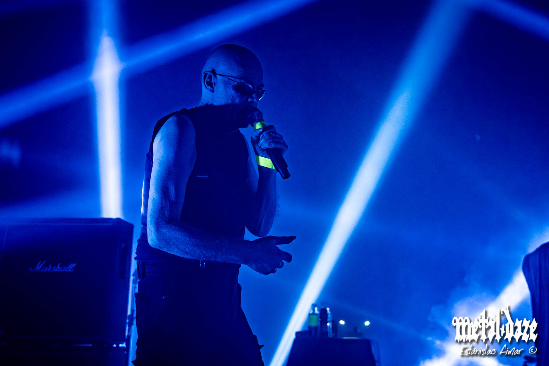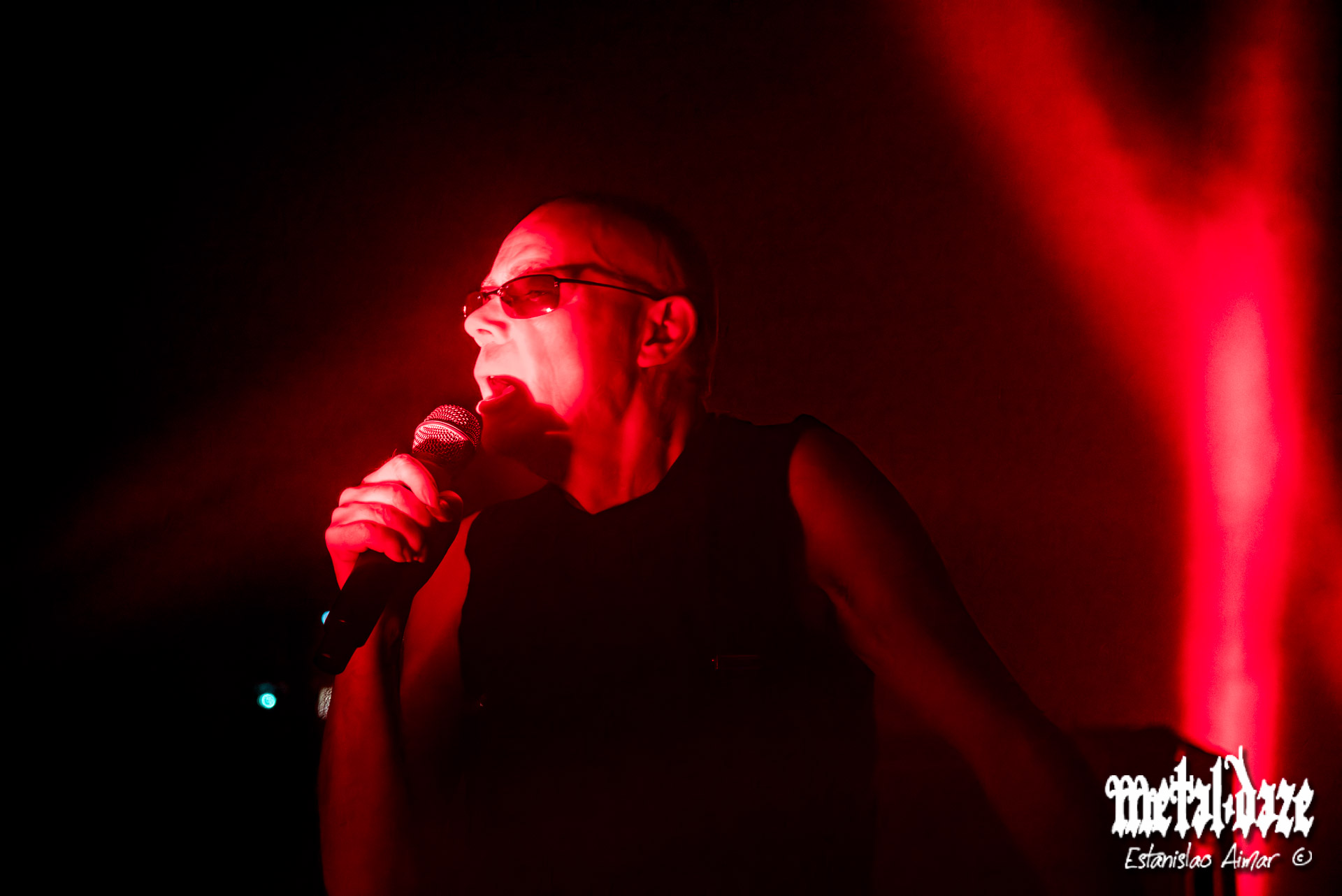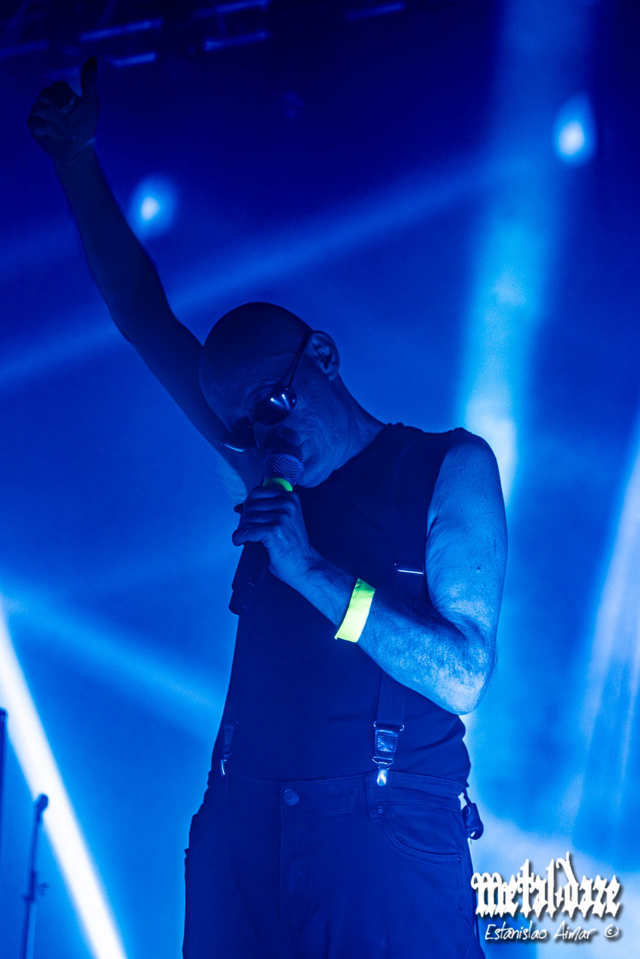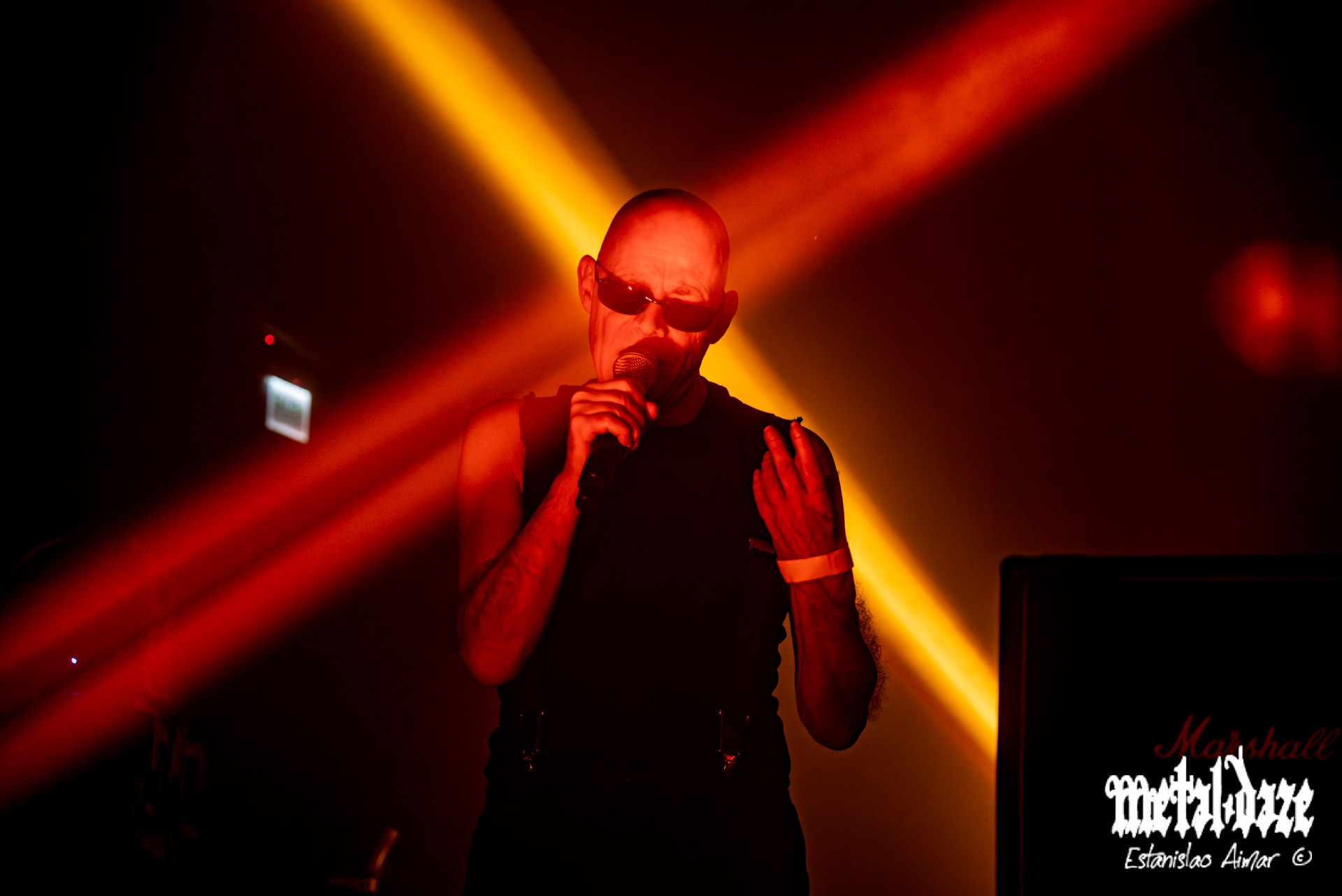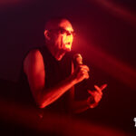 Andrew Eldritch apareció como un ser distante e introspectivo, blindado tras anteojos negros y una economía de movimientos que roza lo ritual: gestos maquinales en el escenario, la silueta recortada por la luz roja y ese timbre de humo que ordena el clima a voluntad. Por momentos fue un vampiro del expresionismo alemán, afilado y espectral, devorando la atención con pura presencia; por otros, un robot sin alma, exacto y glacial, como si la música fluyera a través de un organismo sintético. Hubo pasajes en los que cantó de espaldas al público, dejándonos la sombra como única mueca, y otros en los que arengó a la gente con autoridad seca, midiendo el fervor como quien controla un experimento. Eldritch encarna hoy un ser oscuro y tétrico, a la altura de su leyenda: no busca simpatía ni nostalgia; impone una liturgia gótica donde cada gesto es frontera y cada frase, una orden.