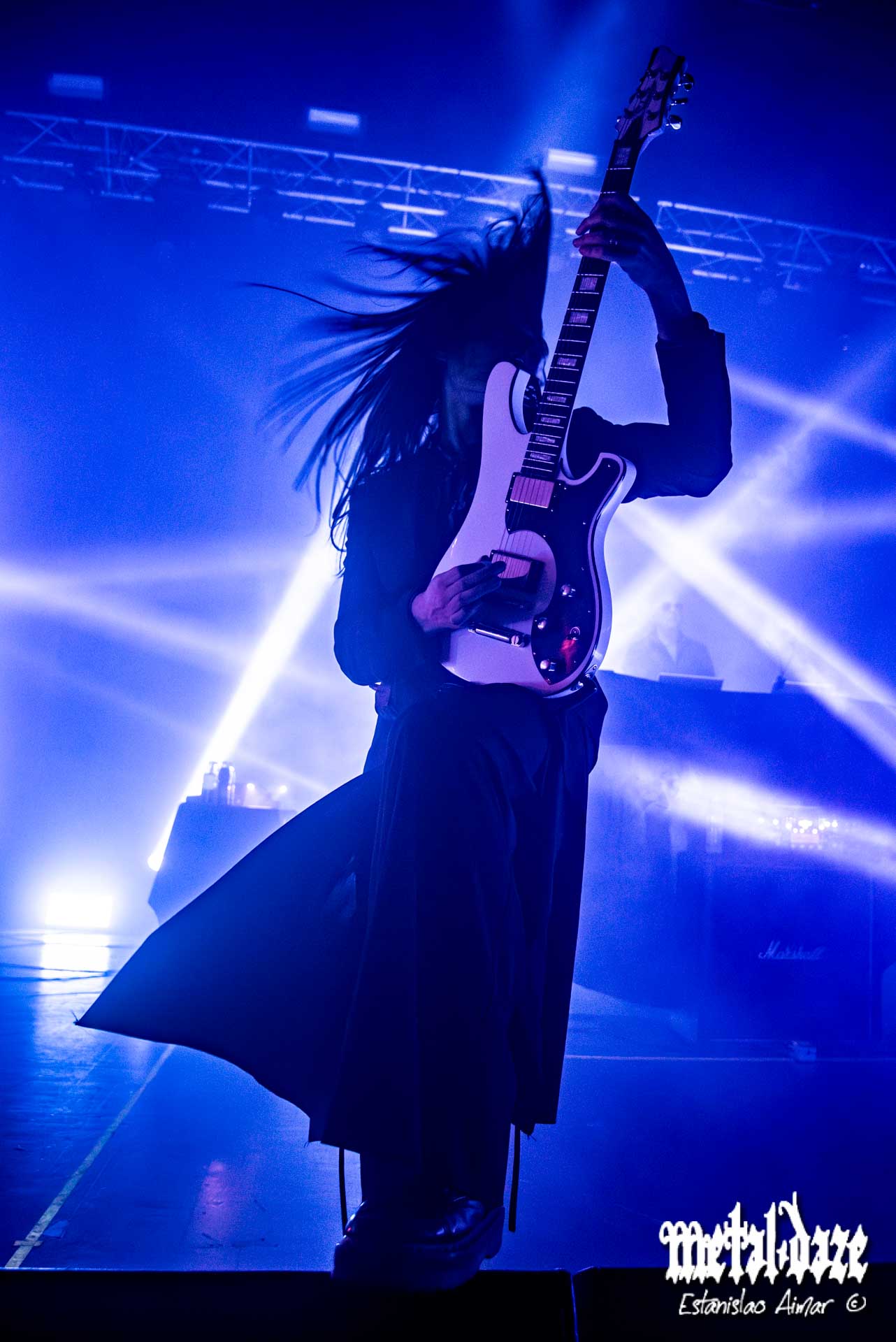 El sonido fue impecable, de esos que pocas veces se escuchan en Flores: nítido, poderoso y equilibrado, permitiendo que cada línea de guitarra y cada golpe maquinal del Doktor Avalanche se sintiera con claridad y peso. Las luces jugaron como un instrumento más, potenciando la música en cada pasaje. Los músicos permanecieron casi siempre entre sombras, con un reflector que iluminaba de forma intermitente sus rostros o instrumentos, como si fueran apariciones espectrales. Rayos azules, rojos y naranjas atravesaban el humo en distintos momentos de las canciones, sumando dramatismo y reforzando la atmósfera gótica hasta convertir el recital en una experiencia inmersiva.
