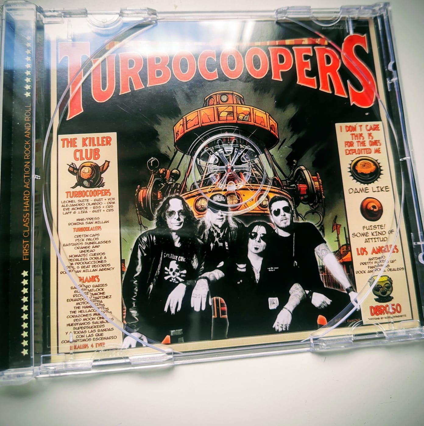 El disco abre con Bienvenidos al Killer Club, un prólogo breve que funciona como la puerta del local: adentro, el ruido manda. Antihero y I Don’t Care marcan el ritmo del viaje: guitarras urgentes, batería que patea la mezcla hacia adelante, voces con la insolencia justa. El espíritu recuerda por momentos a THE HELLACOPTERS, esa mezcla perfecta entre velocidad y melodía, con la mugre del garage y la euforia del hard rock sueco. Pero los Turbocoopers no imitan: metabolizan. Toman la actitud de SUPERSUCKERS, el desenfado de BACKYARD BABIES, el hedonismo peligroso de TURBONEGRO, y lo devuelven pasado por el filtro rioplatense, más ácido, más burlón, más callejero.